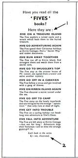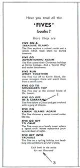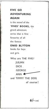 One inconsistency previously described between Versions 1 and 2 of the first edition of Five Go Off To Camp is the spacing between the two 'L's in the word full on the rear panel. When all 29 DB dustwrappers are compared, 27 have narrow spacing between the two 'L's and only two (see titles above) have a wider space.