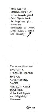 Five On A Treasure Island 16th imp. 1963. Figure 44 - Rear flap