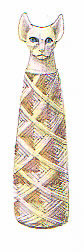 Wild cats were attracted to the Egyptian granaries by the rats and mice present. They came uninvited but stayed as welcome guests. The Egyptians were skilled at taming wild animals and it wasn’t long before the cat had found its way into the household as a much loved pet and mouser. In time, the cat had so captured the imagination of the Egyptian people that it came to be worshipped as a deity. The natural death of a cat was marked by its owners going into mourning and shaving off their eyebrows!