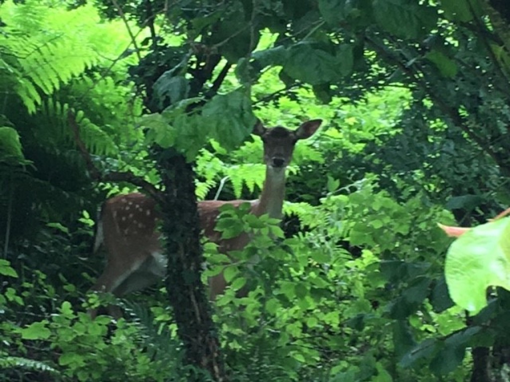 We have the whole spectrum of wildlife from Deer down to Spiders. There is always something to see all through the year. The birdsong, however, is a constant beautiful backdrop all through the day, but the dawn chorus is also spectacular especially in the spring. This year for the first time we heard a Cuckoo and had regular fly pasts from a Red Kite. The Tawny Owls can be heard at night calling to each other across the valley. Bats are often present in some number at dusk during the summer. At first it was a bit disconcerting,  as there is no sound and they fly so quickly you are not sure what you are seeing. Even more so in the bedroom during the early hours! In that case we did manage to carefully catch the little creature and pass it onto the Bat Protection people.