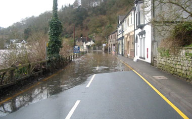 The River Wye is tidal and the river level changes throughout the day accordingly. Normally these changes are relatively small and may not be noticed by the tourists who visit Tintern to enjoy the scenery and Abbey ruins, but at the spring tides the river level can overtop the banks and flood the adjacent fields - and buildings!