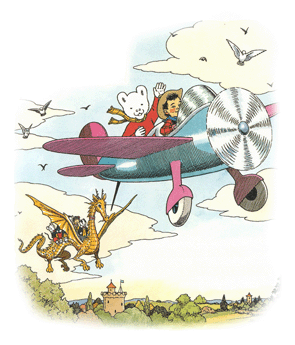 We enjoyed the company of Mary Cadogan who gave us a foretaste of her new book about the women in Rupert's world, with Mary Tourtel, Rupert's creator, of course being the most important. This year's play was "Rupert And Gaffer" and once more the theatre was turned into the world of Nutwood with all Rupert's chums, the Sage of Um in his flying Brella and, making his first appearance, a magnificent sea serpent! (see below).