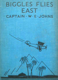What I do remember vividly is being drawn in by the design on the covers of some of the 1930s Biggles books, in particular the blue covers showing a bi-plane flying over palm trees and pyramids. My thinking at the time was "I want to read some of these books that I keep selling every day; stop 'wasting' money on paperback books and buy something which I will be able to resell, hopefully for at least what I paid for it".