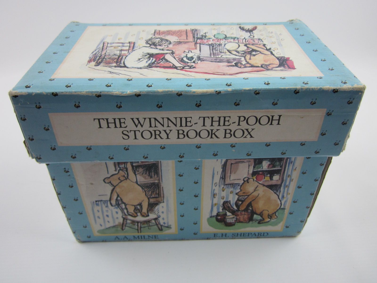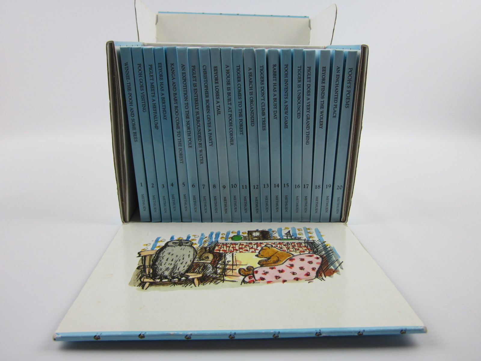 Very good condition. Contains 20 small format story books in the Pooh bear series by A.A.Milne. Glazed pictorial boards. Colour illustrations.