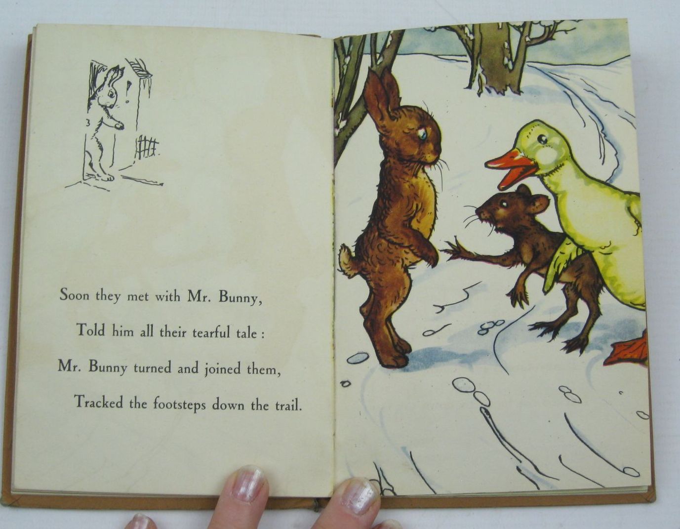 Bumping to spine and corners and board edges. Small splits to bottom of spine. Name in child's handwriting to front pastedown. Transfer of parts of some pictures to opposite page - possibly a printing error. Contents generally clean. Dustwrapper is edge worn with some tears and chipping. Small area of loss to top of wrapper. Wrapper is grubby.