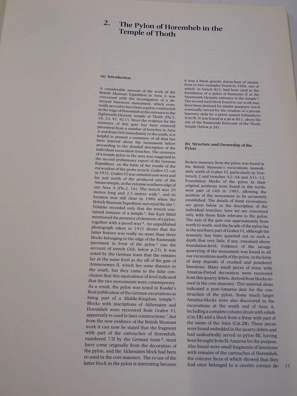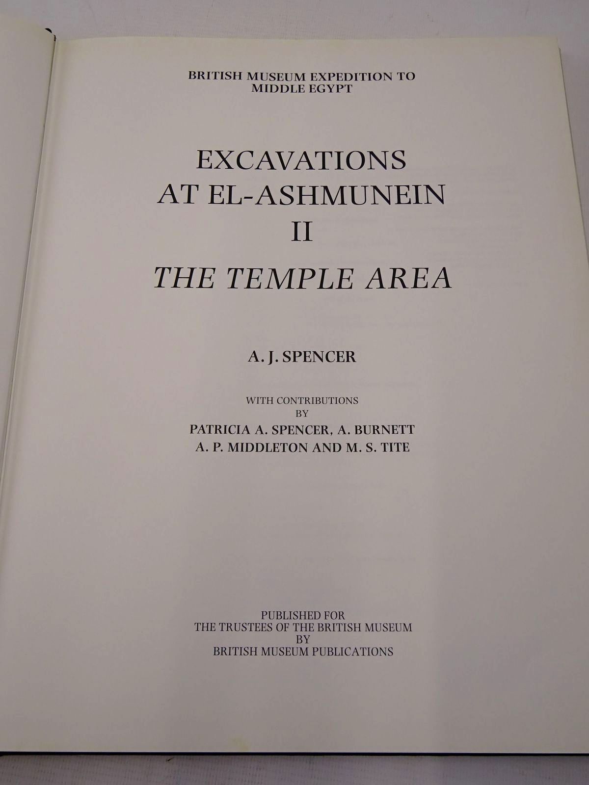 Slightly better than very good condition in a very good dustwrapper. Very large format. British Museum Expedition to Middle Egypt. A full publication of the excavations carried out between 1980 and 1985 in the temple area at El-Ashmunein. Black cloth boards, gilt title to spine. B/w photos and drawings.