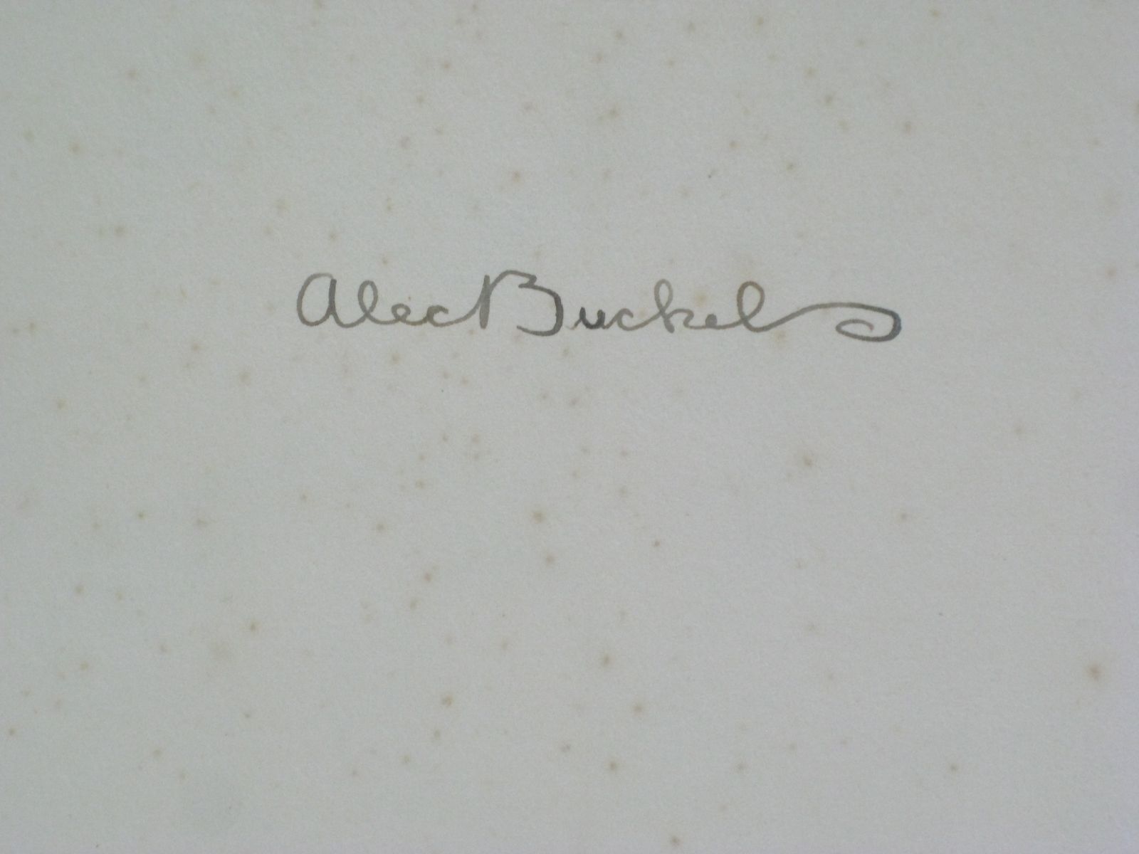 Spine and corners slightly bumped and rubbed, tiny nick to side of spine. Covers a little grubby and foxed. Light foxing to endpapers. Name in ink (Alec Buckels - but no idea if this is an authentic author signature or not!) to front endpaper. A couple of page hinges slightly cracked. Creases to some pages from the binding process. Contents clean.