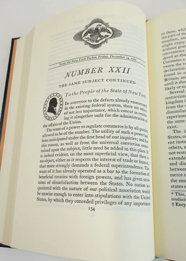 Nearly fine condition. Introduced by Carl van Doren. Papers by Hamilton, Madison & Jay. Collector's edition. Bound in genuine leather. Navy blue leather boards with 4 raised bands to spine, gilt title to spine, gilt tooling to boards. Peach coloured moire endpapers and matching ribbon page marker. Colour frontis. All edges gilt. xxii and 600 pages including index.