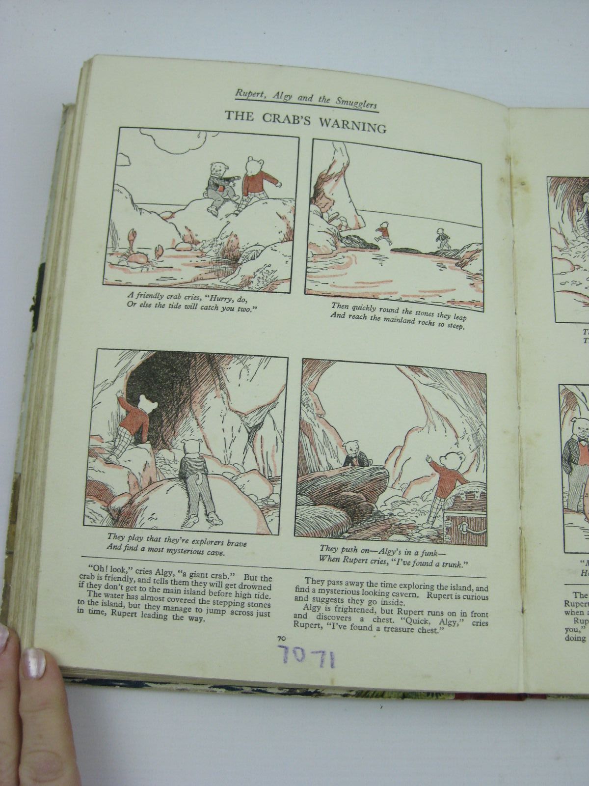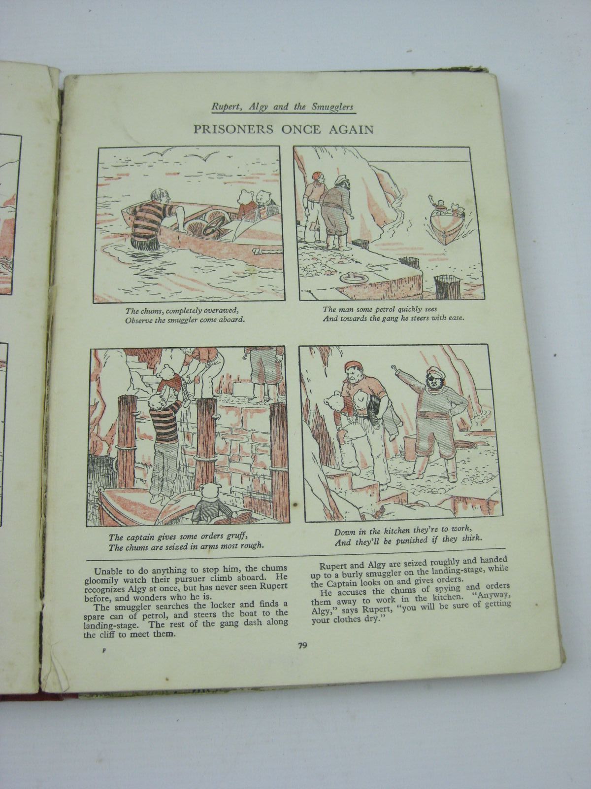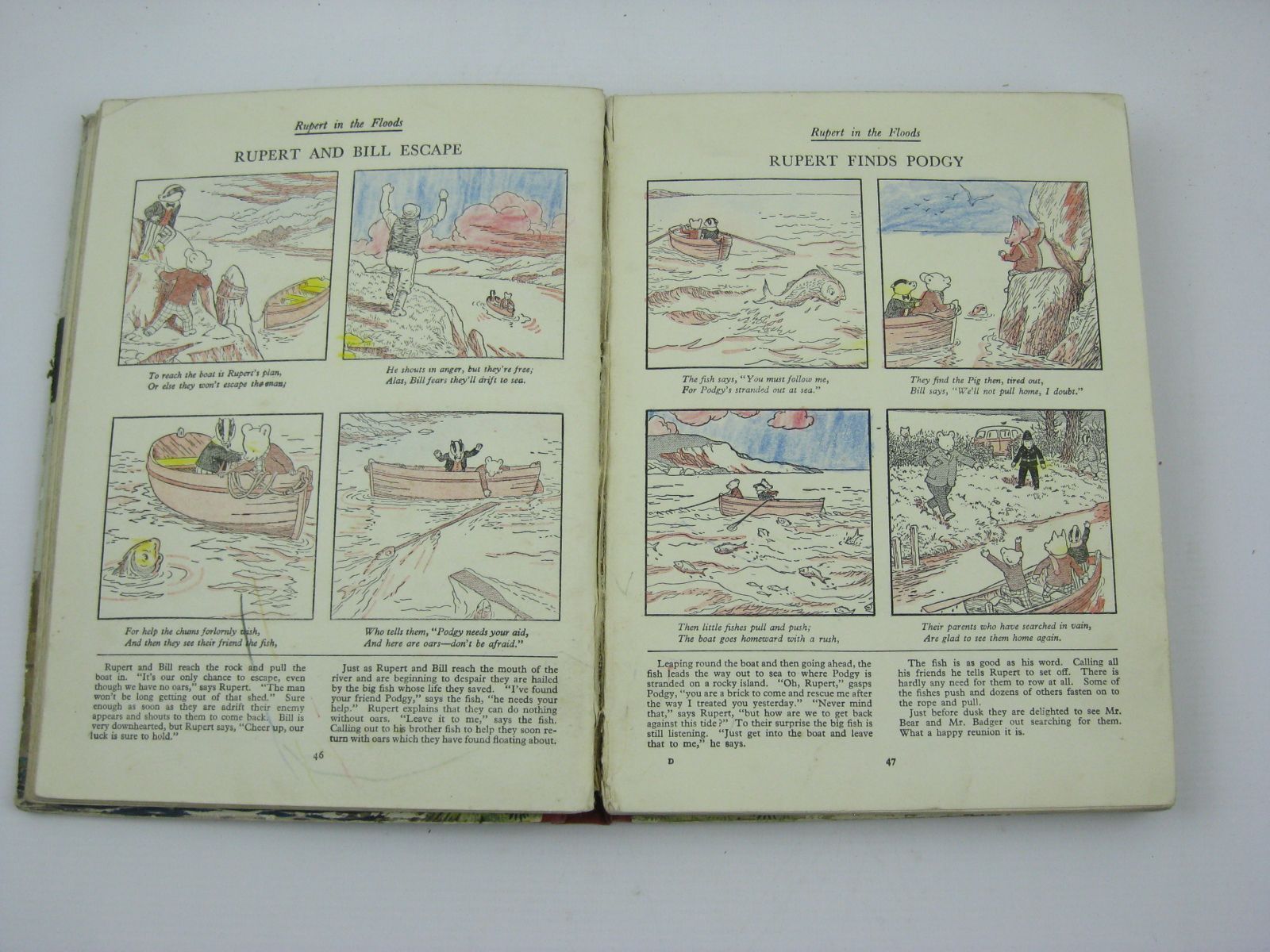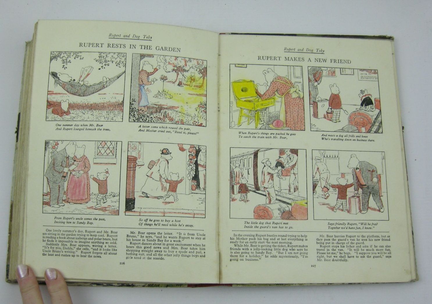 Fair condition. The second Rupert annual. Colour pictorial boards showing Rupert and chums on a bridge. 1st story Rupert and the Snow Machine. Red cloth spine, black lettering. 124 pages. 7.5x10". Red and black illustrations throughout.