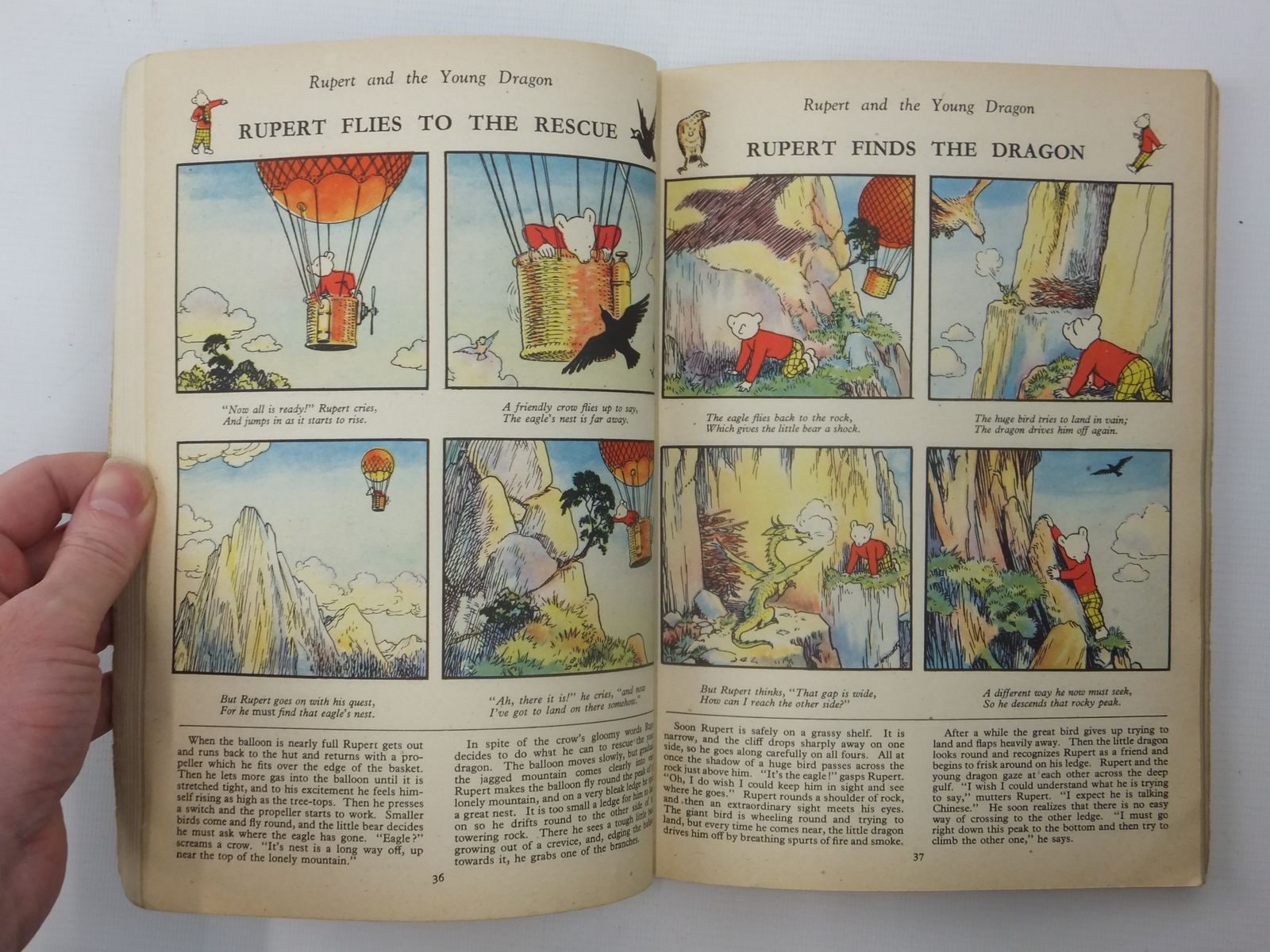 Almost very good condition. Pictorial card wraps - Rupert running after a tiny dragon. 1st story Rupert and the Top Hat.