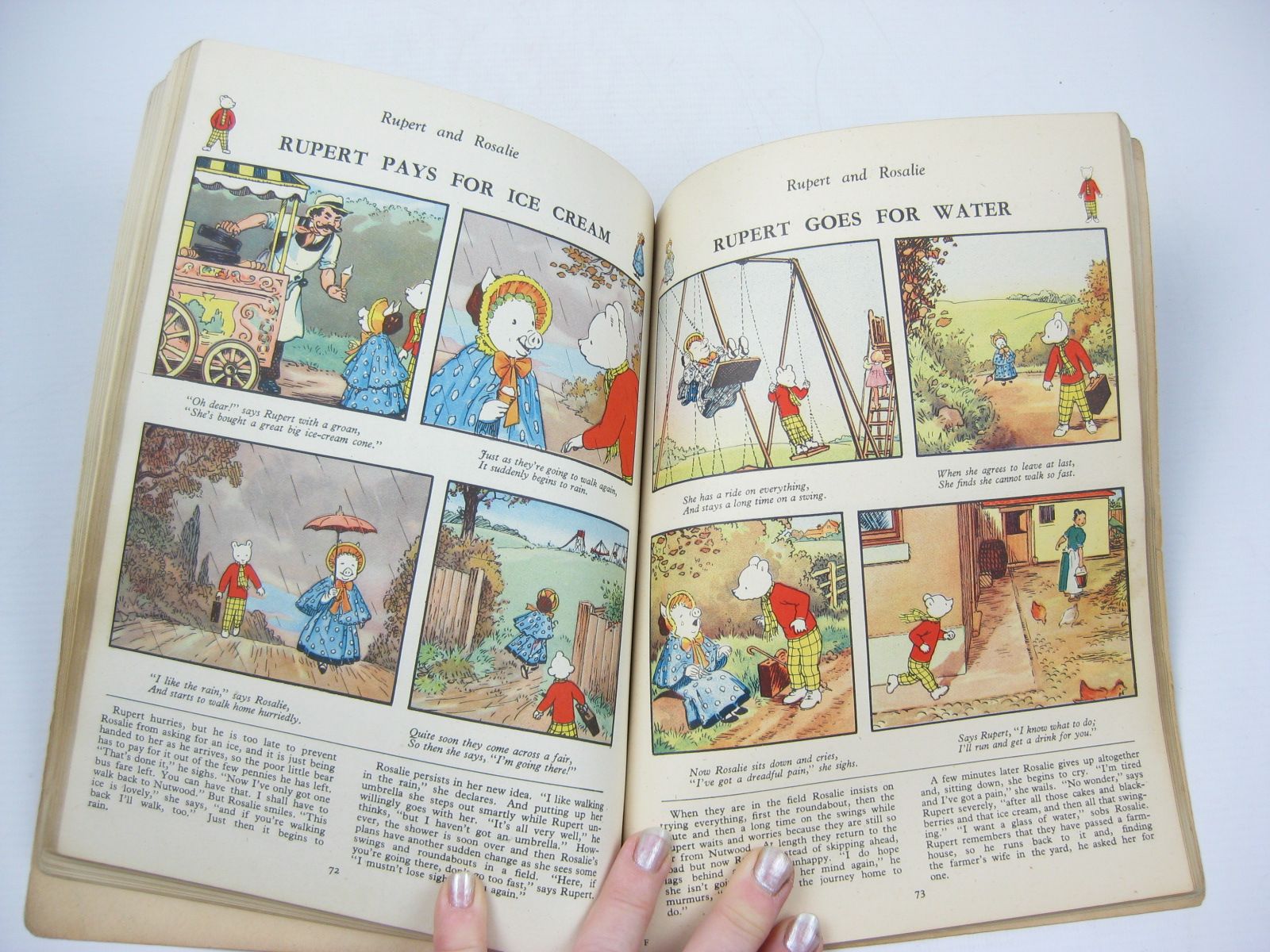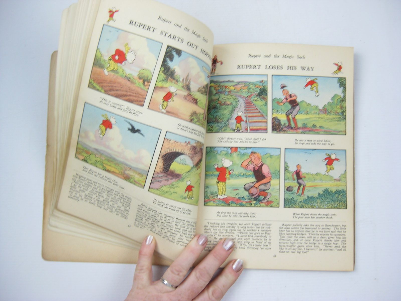 Almost very good condition. Pictorial paper wraps. Front cover shows Rupert running with a little dog on a lead. A rainbow is in the background. 1st story is Rupert and Jack Frost. 120 pages. 9.5 x 7 inches.