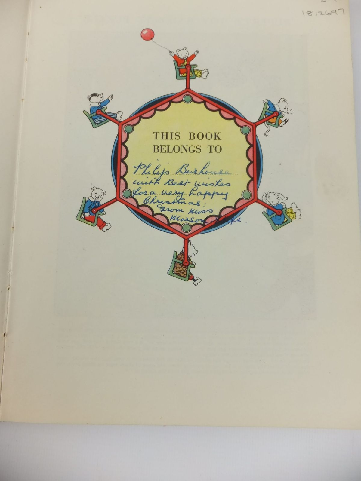 A few very minor marks to covers which are nice and bright. Backstrip complete but 1" and 2" splits to front edge. Rear edge of spine starting to split. Corners lightly rubbed. Front and rear joint weak. Name in belongs to box. NOT price-cut (no price printed in this copy). Maze garden puzzle page completed. Contents bright.