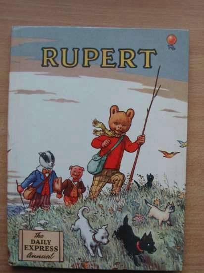 Colour laminated boards - Rupert hiking in a field. 1st story Rupert and Poll Parrot. 10x7 inches. 107 pages. Spine and corners bumped, approx. 1cm split at top of spine.Price-cut. 'Belongs To' box completed in ink. Crossword puzzle done in pencil, colouring contest page completed.