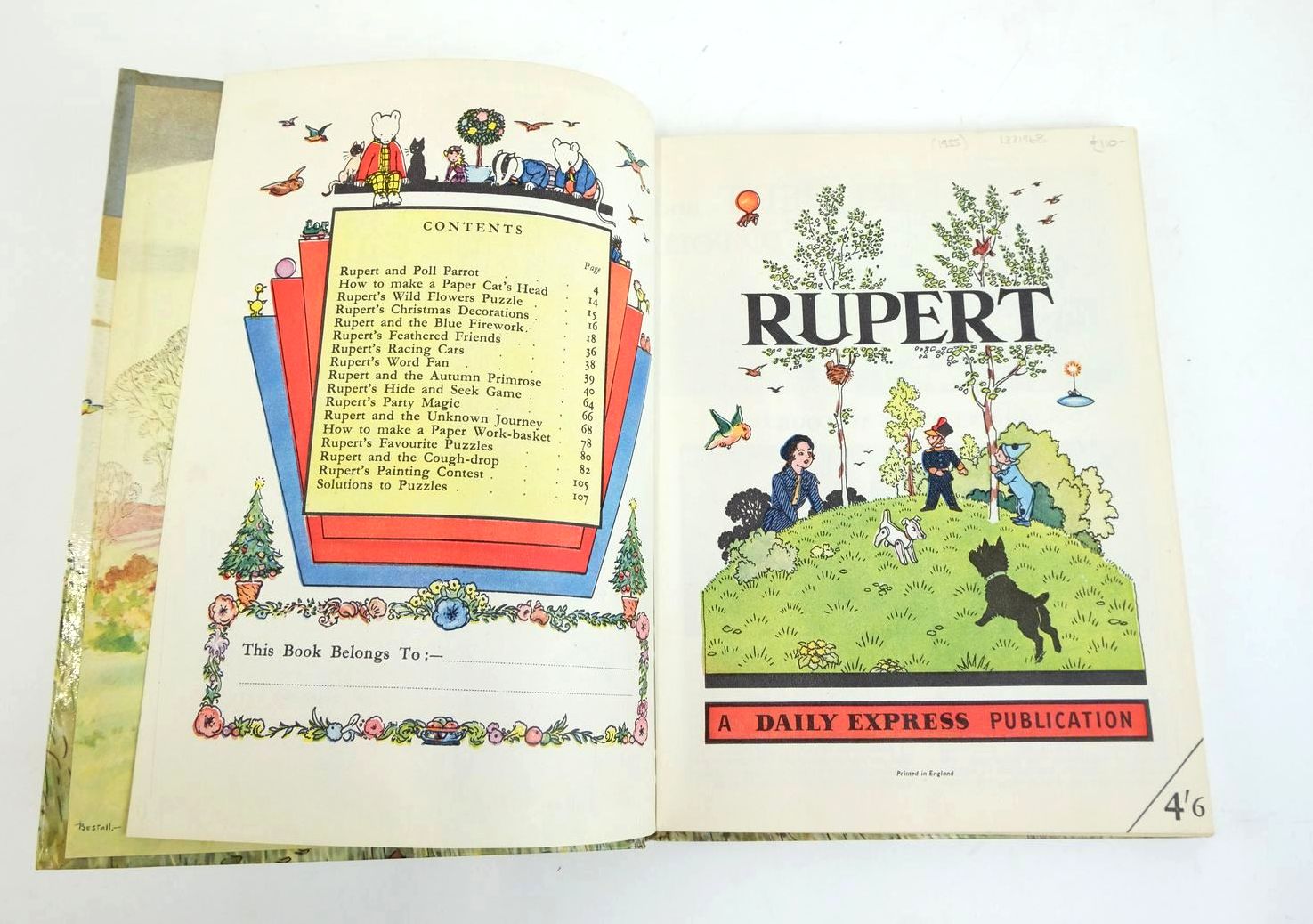 Slightly better than very good condition. Colour laminated boards - Rupert hiking in a field. 1st story Rupert and Poll Parrot. 10x7 inches. 107 pages.