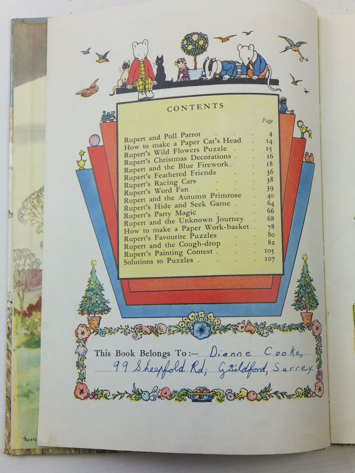 Almost very good condition. Colour laminated boards - Rupert hiking in a field. 1st story Rupert and Poll Parrot. 10x7 inches. 107 pages.