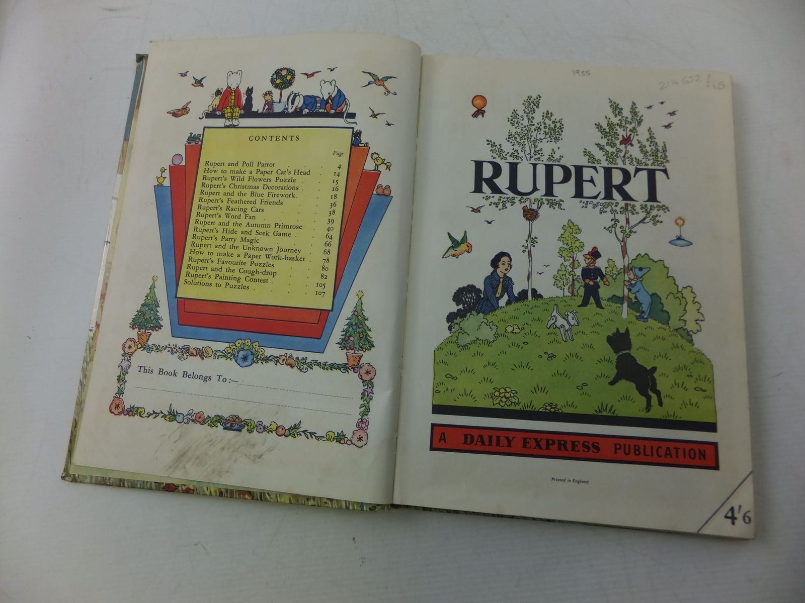 Almost very good condition. Colour laminated boards - Rupert hiking in a field. 1st story Rupert and Poll Parrot. 10x7 inches. 107 pages.