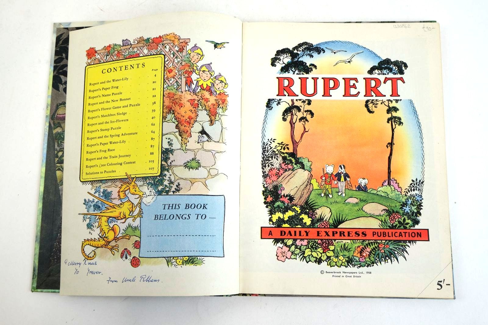 Very good condition. This is the first Rupert annual to be dated on the inside title page. Colour illustrated boards showing Rupert leap-frogging over Bill Badger. First story 'Rupert and the Water-Lily'. 107 pages.