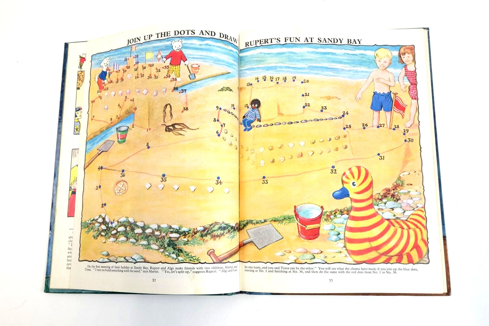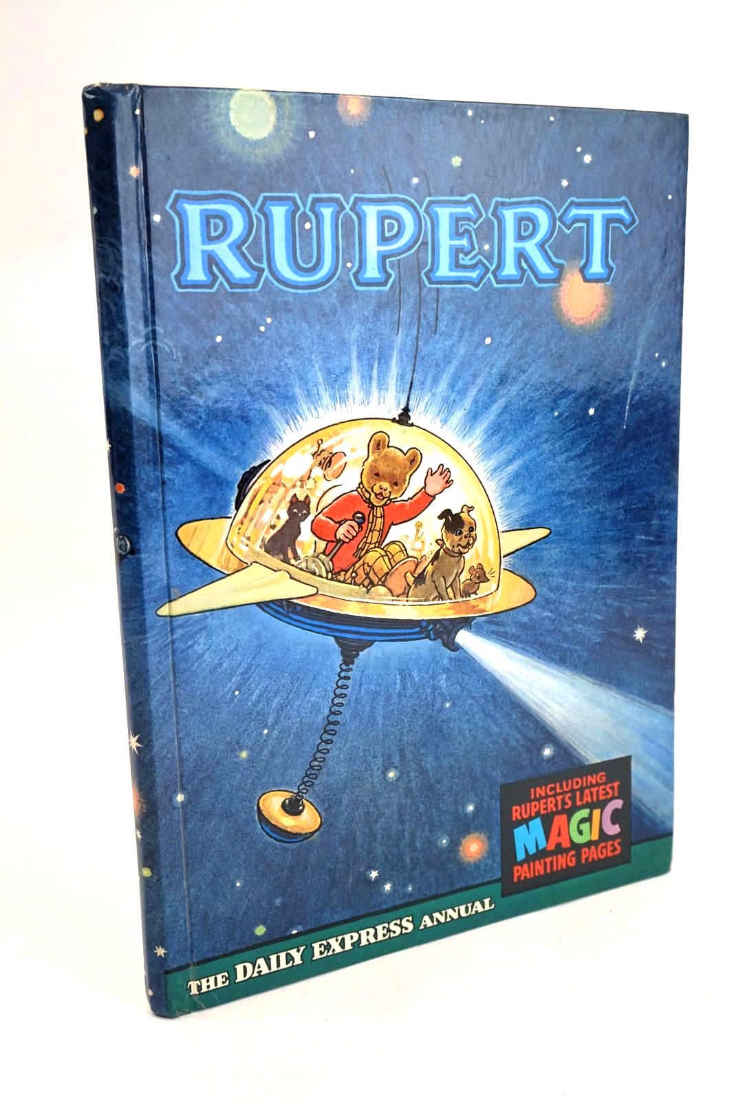 Very good condition. Dark blue laminated boards. Front cover shows Rupert and chums in a flying saucer. First story - Rupert and the Magic Ball. Includes Magic Paintings.