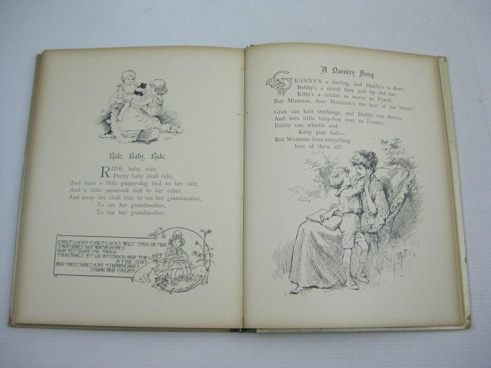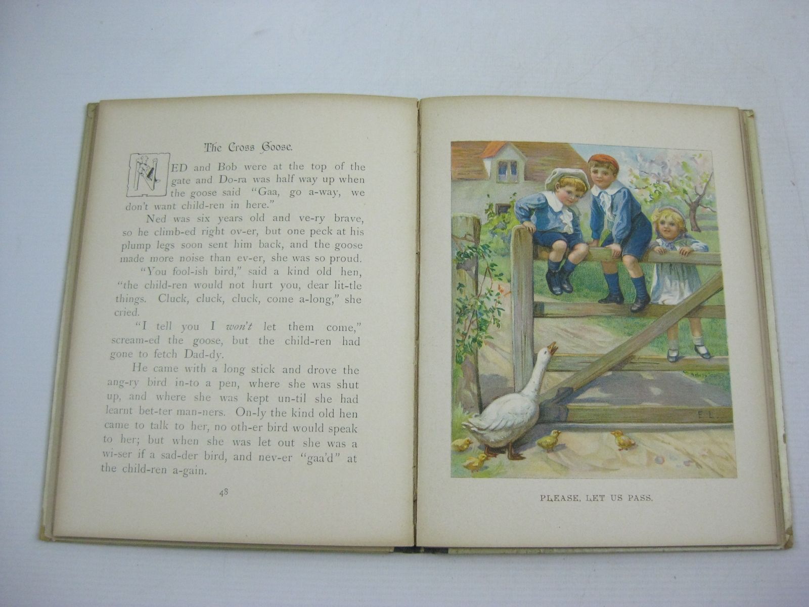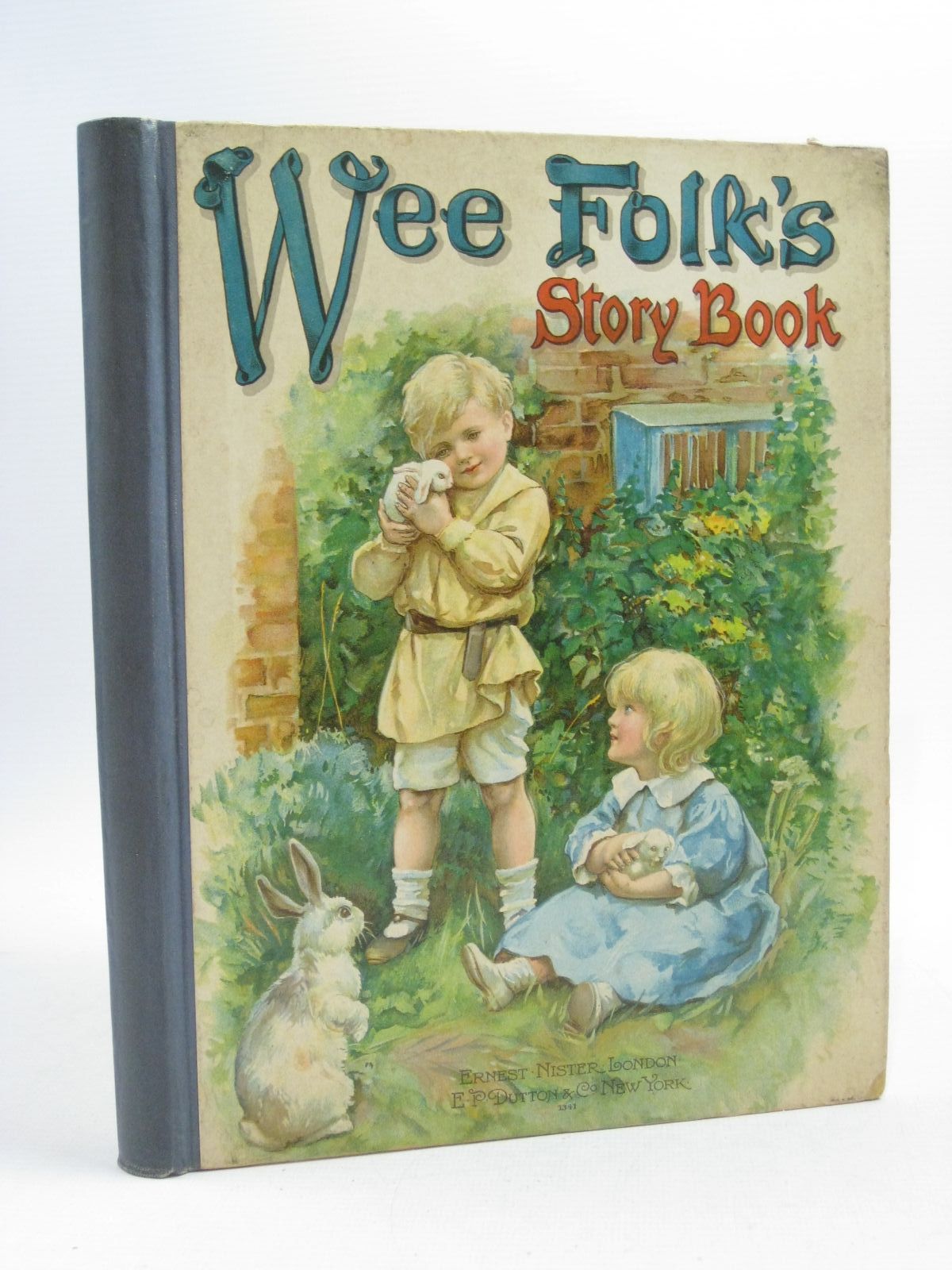 Very good condition. Cloth spine. Pictorial boards with front cover showing boy standing and girl sitting cuddling baby rabbits. 6 chromolithograph plates. B/w text illustrations. 102 numbered pages. A book of short stories and verses for children.