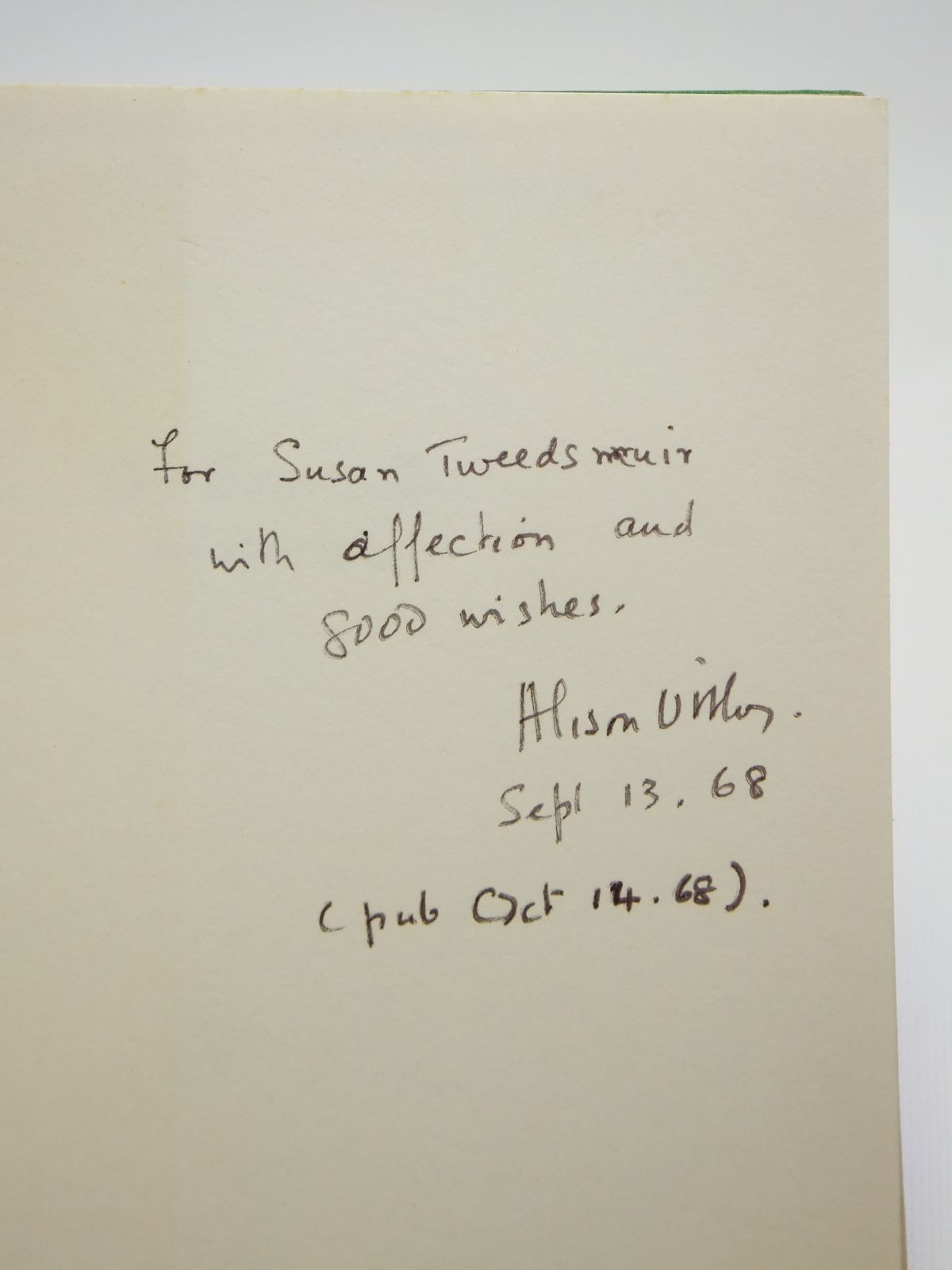 SIGNED by author, with dedication to previous owner to front endpaper. Bottom of spine bumped. Pale foxing to endpapers and outer page edges. Wrapper is price-cut with spine browned and some edge-creasing; a few marks.