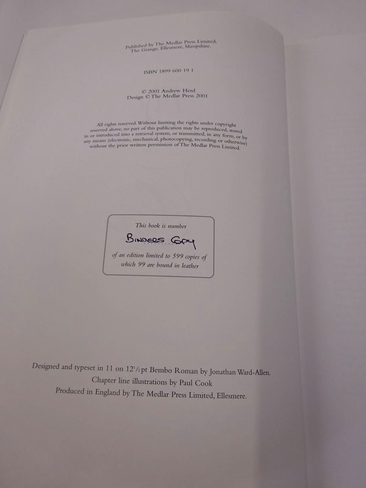 Nearly fine condition. Limited edition of 599 copies of which 99 are bound in leather (this copy is cloth bound). Gilt titles and pictorial onlay to front. B/w illustrations.
