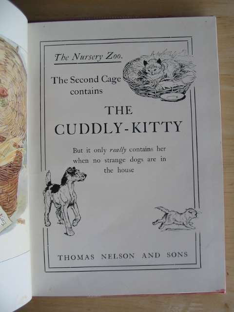 Almost very good condition. The Nursery Zoo series, The Second Cage. Red cloth boards with large pictorial onlay to front cover. One page of text facing one full page colour illustration printed one side of page only.