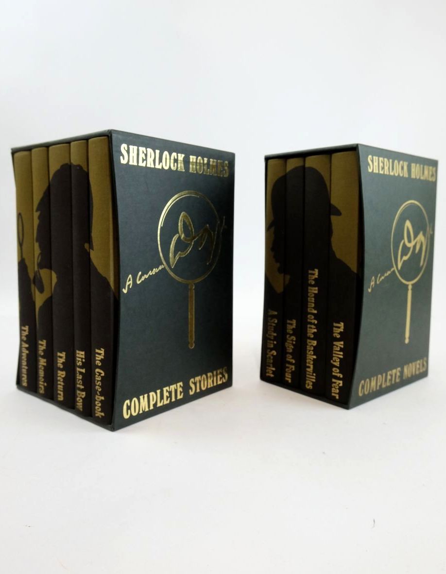 Slightly better than very good condition. Nine volume set in two slip cases: The Case-book; His Last Bow; The Return; The Memoirs; The Adventures; A Study in Scarlet; The Sign of Four; The Hound of the Baskervilles; The Valley of Fear. Green cloth boards with black silhouette of holmes, gilt title to spine. B/w illustrations. One set of five and one set of four in slipcase.