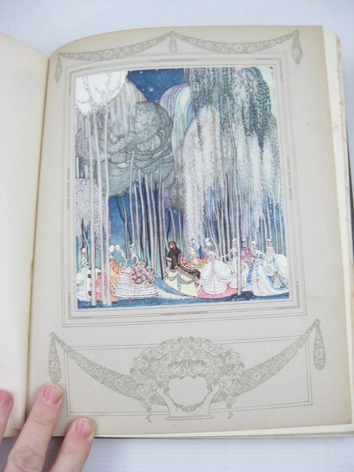 Very good condition. Old Fairy Tales retold by Quiller-Couche. The first of Nielsen's greatest works. 24 magnificent colour plates reflecting both the Japanese influences and the Aubrey Beardsley tradition. The plates are tissue-guarded and tipped-in decorated backgrounds. Grey pictorial cloth, gilt title and floral decoration to spine. Grey and cream pictorial endpapers. Decorative borders to each page. 163 numbered pages. Large format.