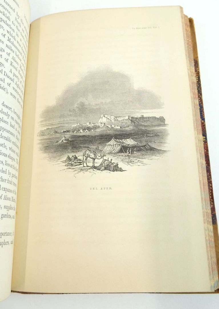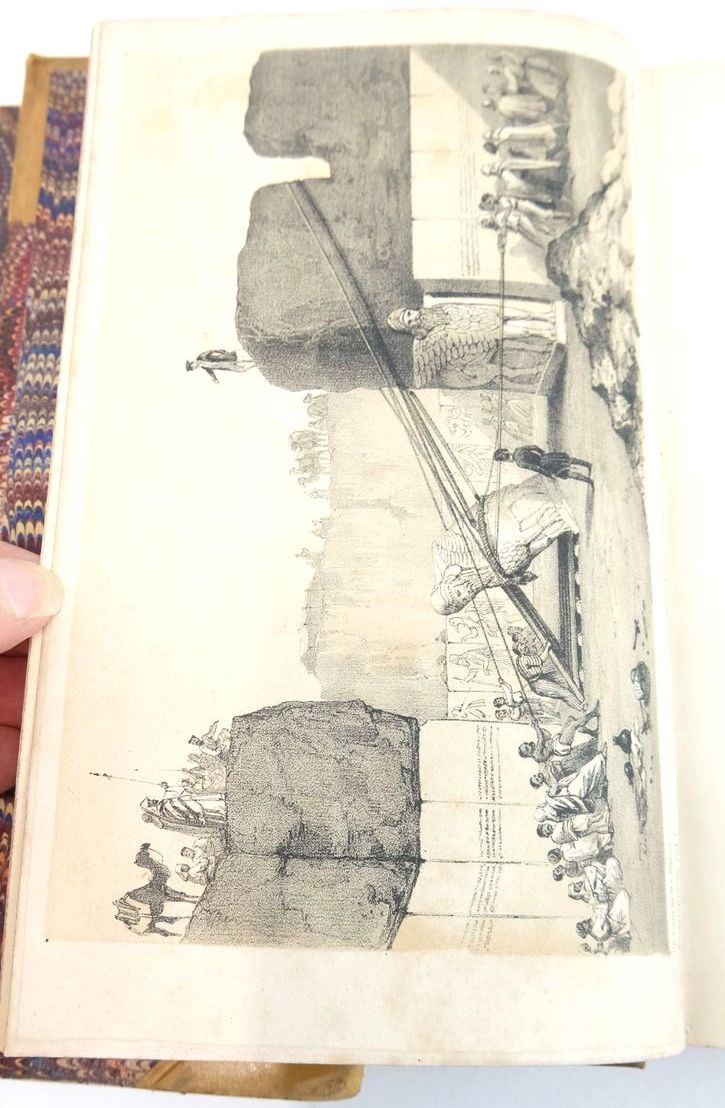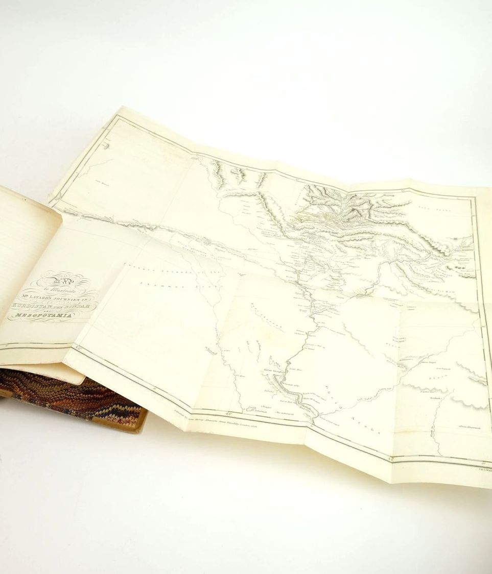 Almost very good condition. With an account of a visit to the Chaldean Christians of Kurdistan, and the Yezidis, or Devil-Worshippers; and an enquiry into the manners and arts of the ancient Assyrians. Three-quarter leather binding, gilt title to spines, 5 raised bands to each volume, marbled paper sides. Marbled text block and endpapers. Plates, woodcuts and plans (some folding). Folding map to rear.