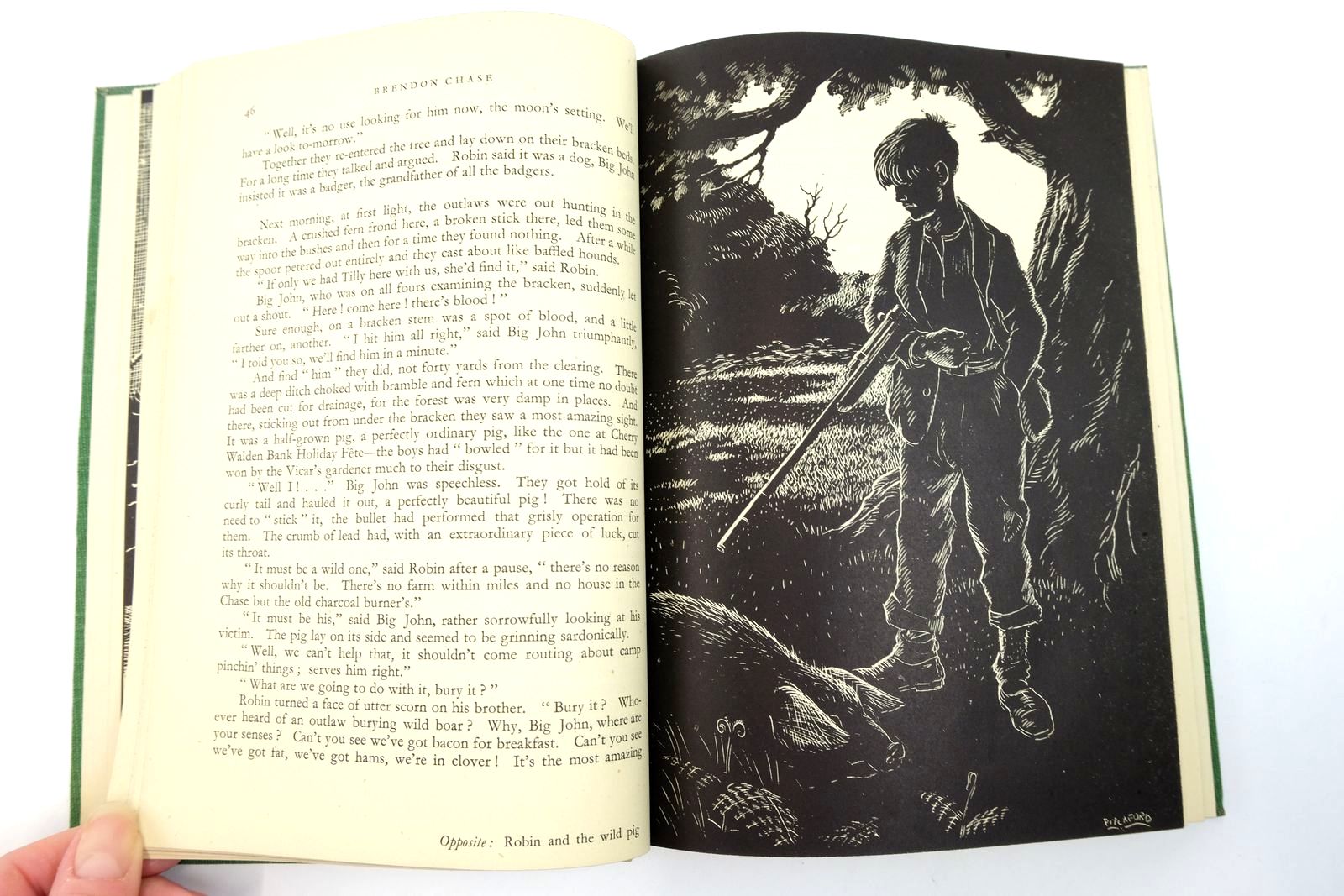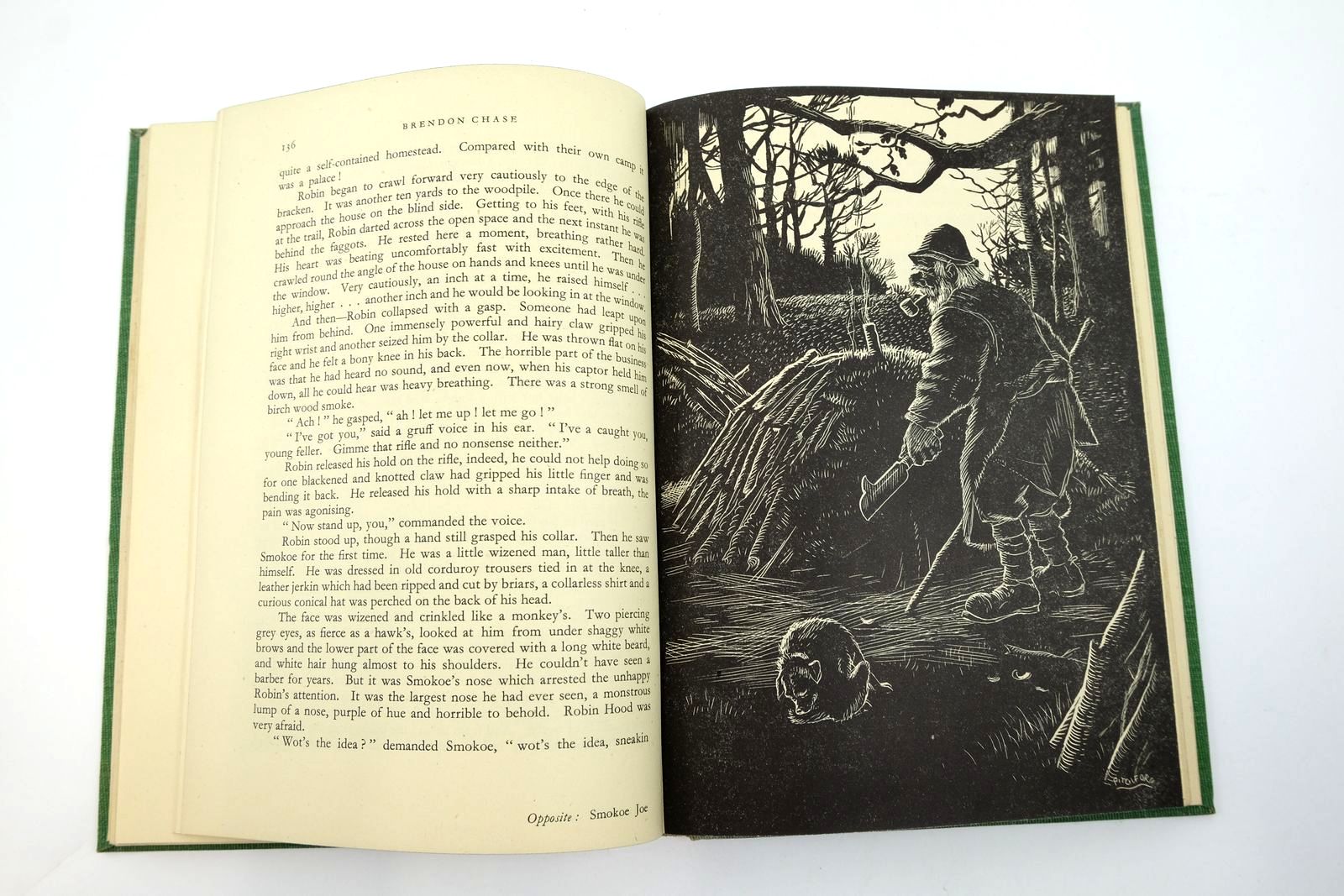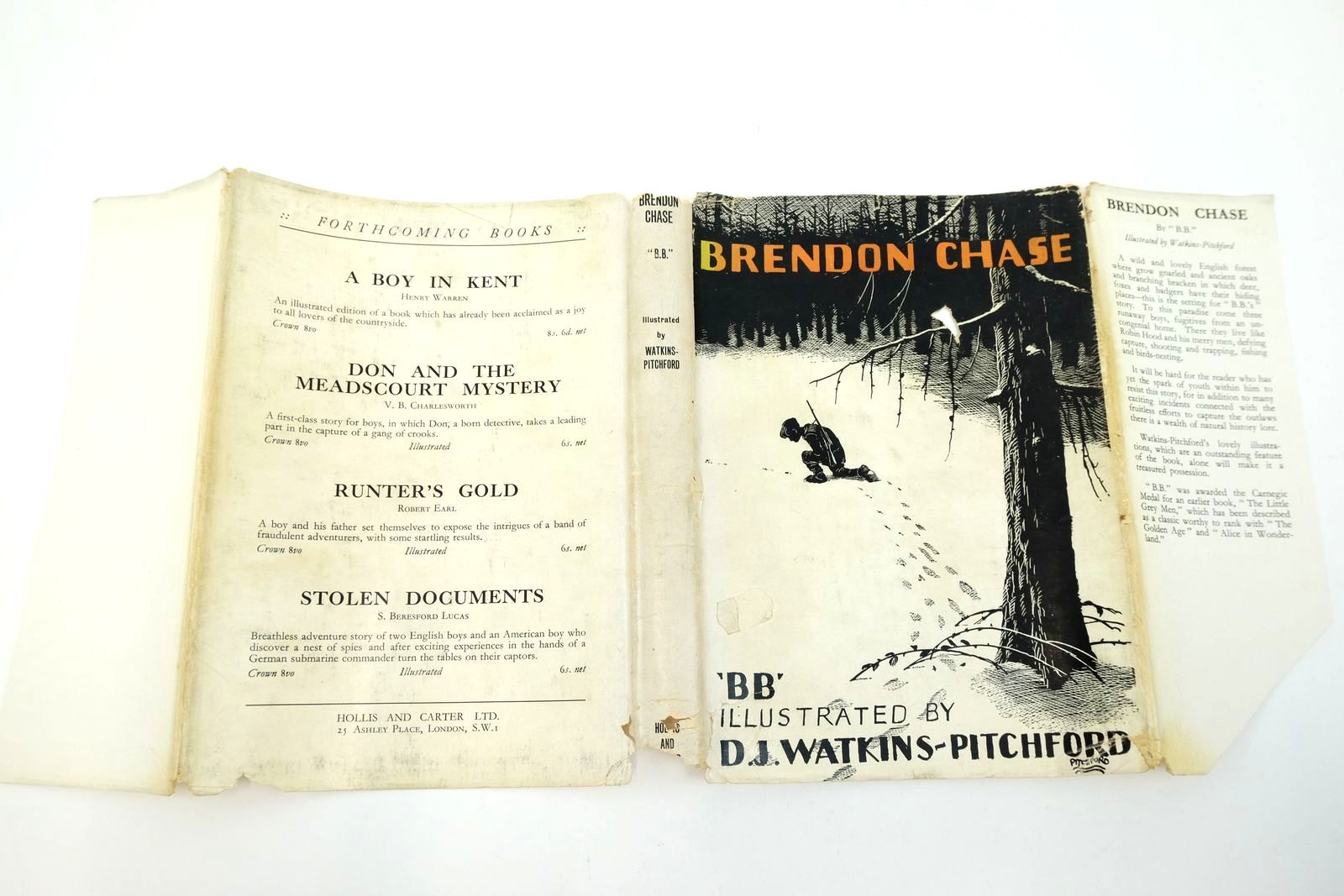 Almost very good condition in a good dustwrapper. Three brothers decide to run away and try their hand at living and surviving like outlaws, on Brendon Chase. Green cloth covers, gilt title to spine and vignette to front cover. Top edge green. 236 pages. 8.75 x 6". B/w wood engravings.