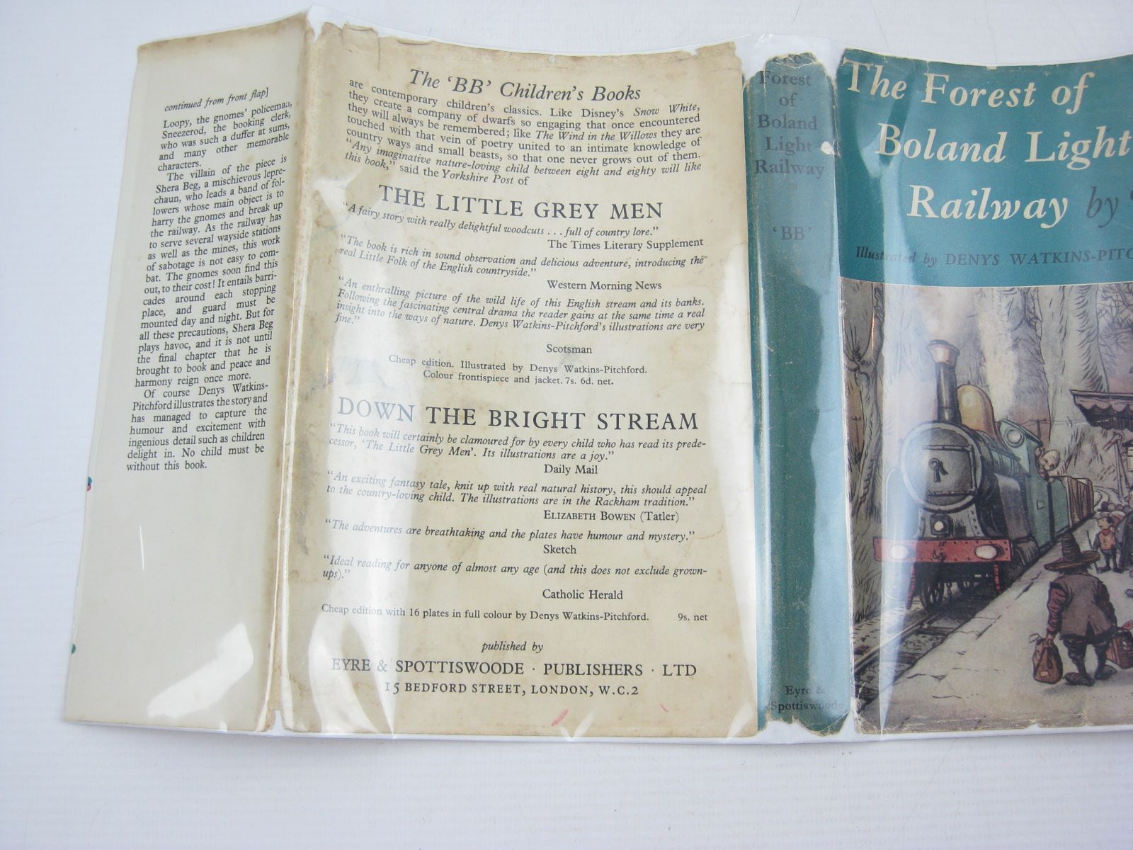 Very good condition in a good dustwrapper. A quite enchanting story of a colony of gnomes who live in the vast Forest of Boland, quarrying in their mines for precious metals with the aid of the Boland Belle of the Forest Light Railway. One day a mischievous leprechaun leads a band of followers in an attempt to break up the railway... Humour and excitement is captured with ingenious detail in BB's superb b/w illustrations and colour frontis. Blue pictorial boards. 127 pages.