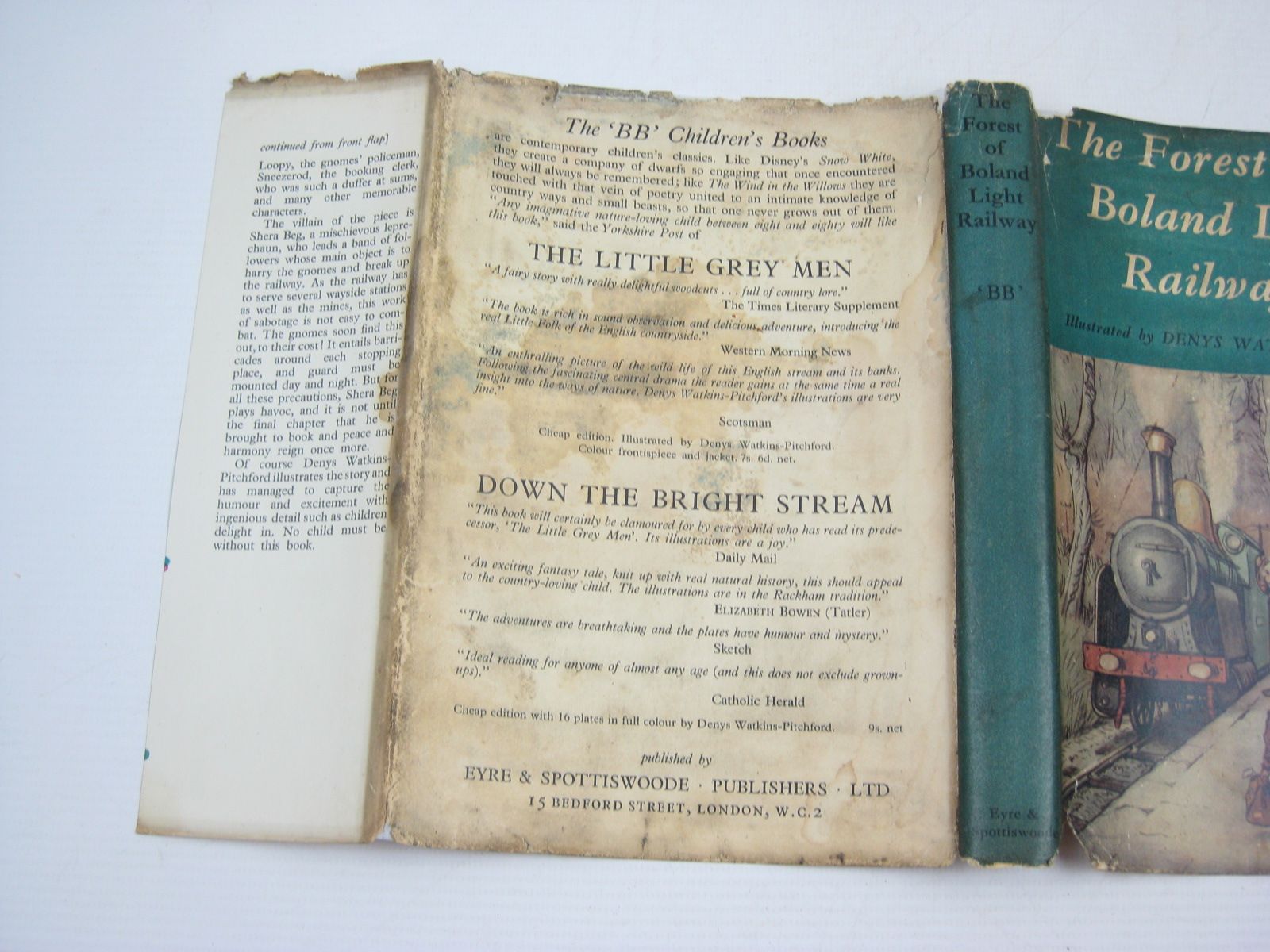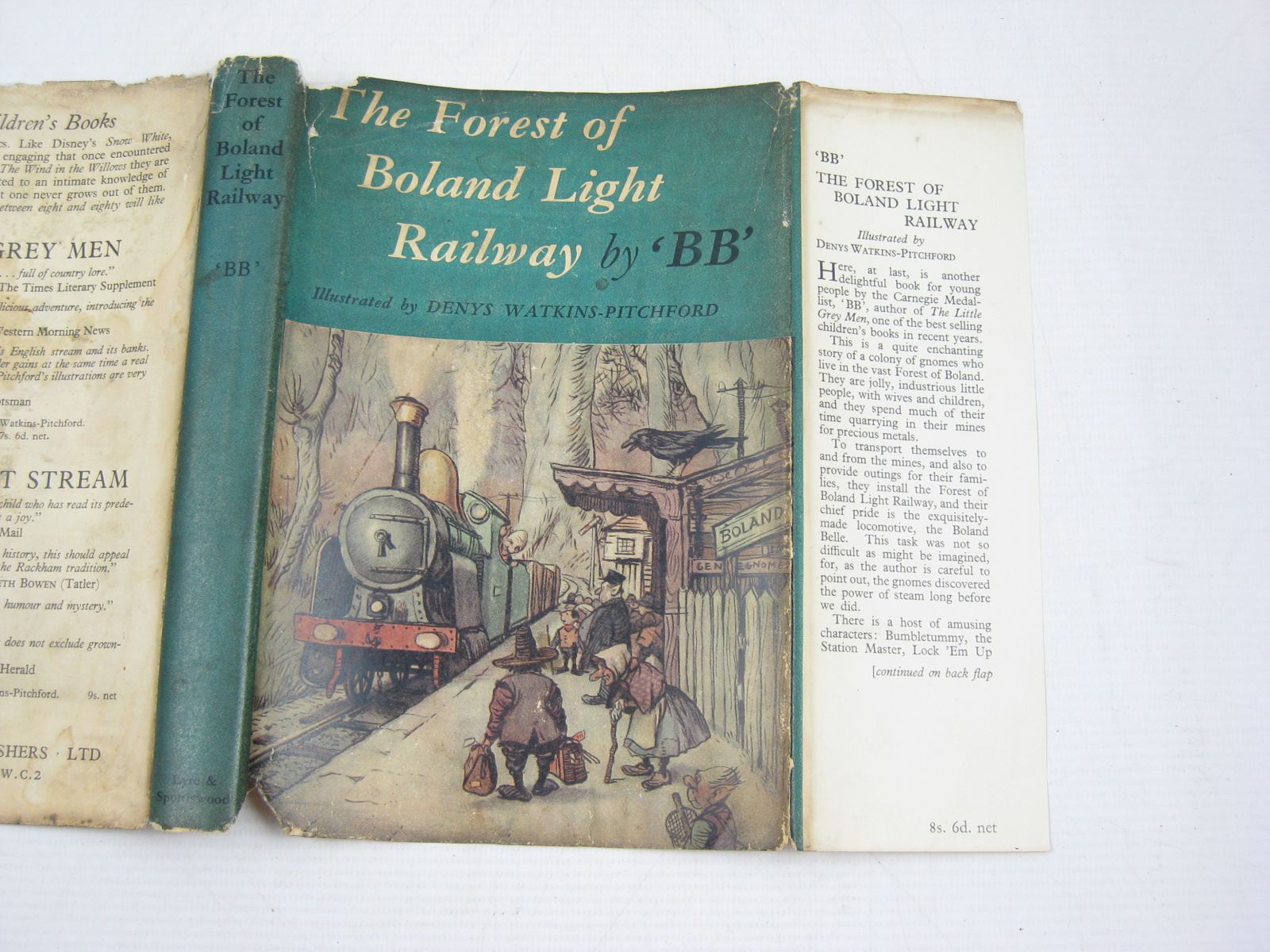 Almost very good condition in a good dustwrapper. A quite enchanting story of a colony of gnomes who live in the vast Forest of Boland, quarrying in their mines for precious metals with the aid of the Boland Belle of the Forest Light Railway. One day a mischievous leprechaun leads a band of followers in an attempt to break up the railway... Humour and excitement is captured with ingenious detail in BB's superb b/w illustrations and colour frontis. Blue pictorial boards. 127 pages.