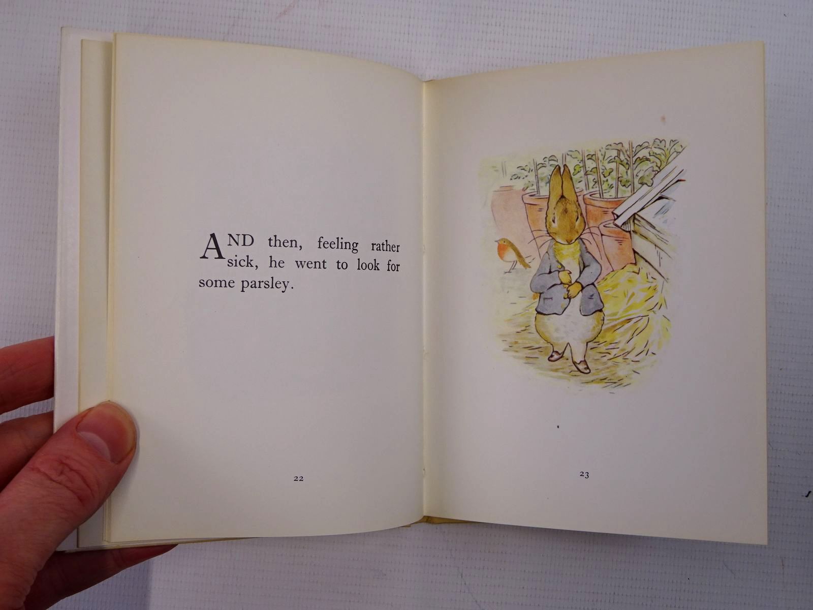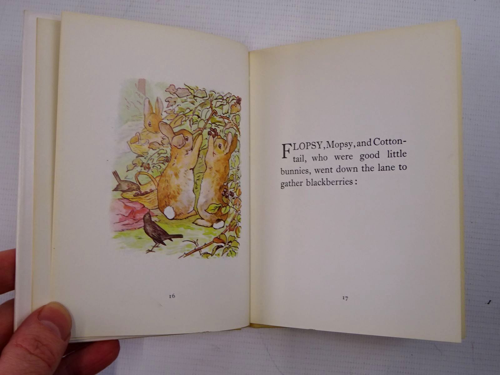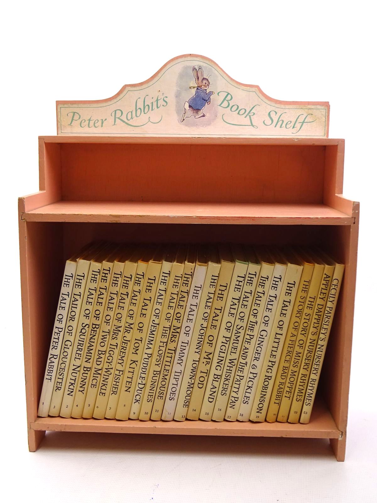 Slightly better than very good condition in a very good dustwrapper. Complete set of the Tales Of Peter Rabbit. 23 books in total housed in original Peter Rabbit wooden bookshelf which has been painted pink.