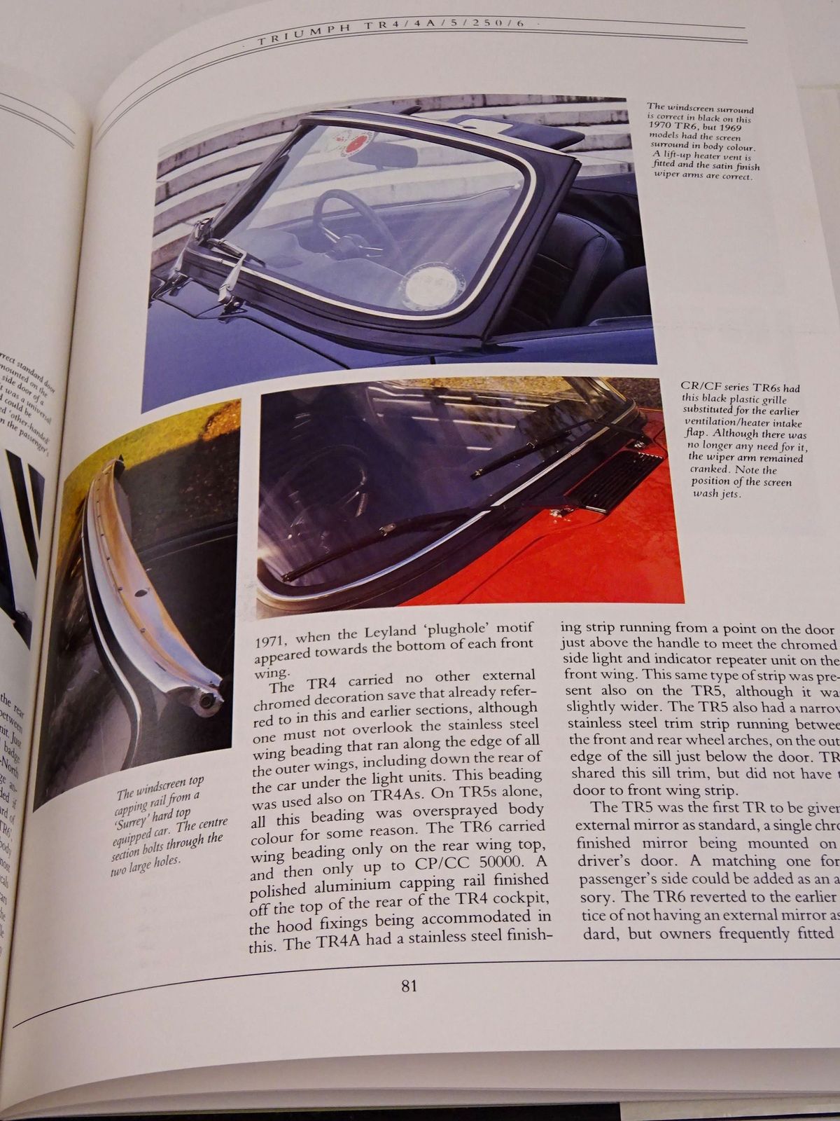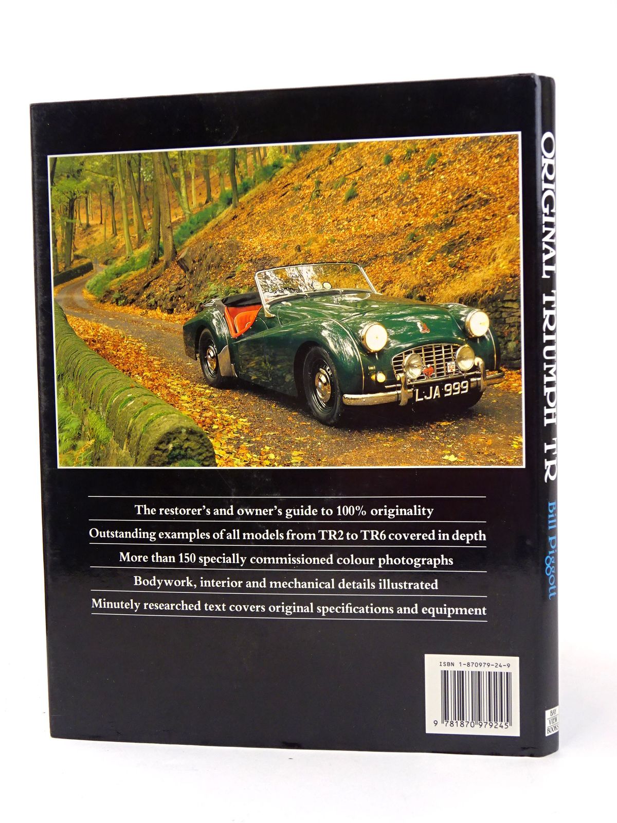 Nearly fine condition in a slightly better than very good dustwrapper. The Restorer's Guide to TR2, TR3, TR3A, TR4, TR4A, TR5, TR250, TR6. Large format. Black boards, gilt title to spine. Colour photos.