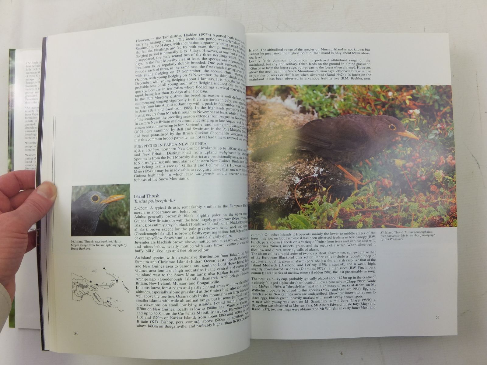 Nearly fine condition in a nearly fine dustwrapper. Two Volumes. Volume 1: Non-Passerines; Volume 2: Passerines. Large format. Green imitation leather boards with gilt title to spine. Maps to endpapers. Colour photos, b/w illustrations and distribution maps.