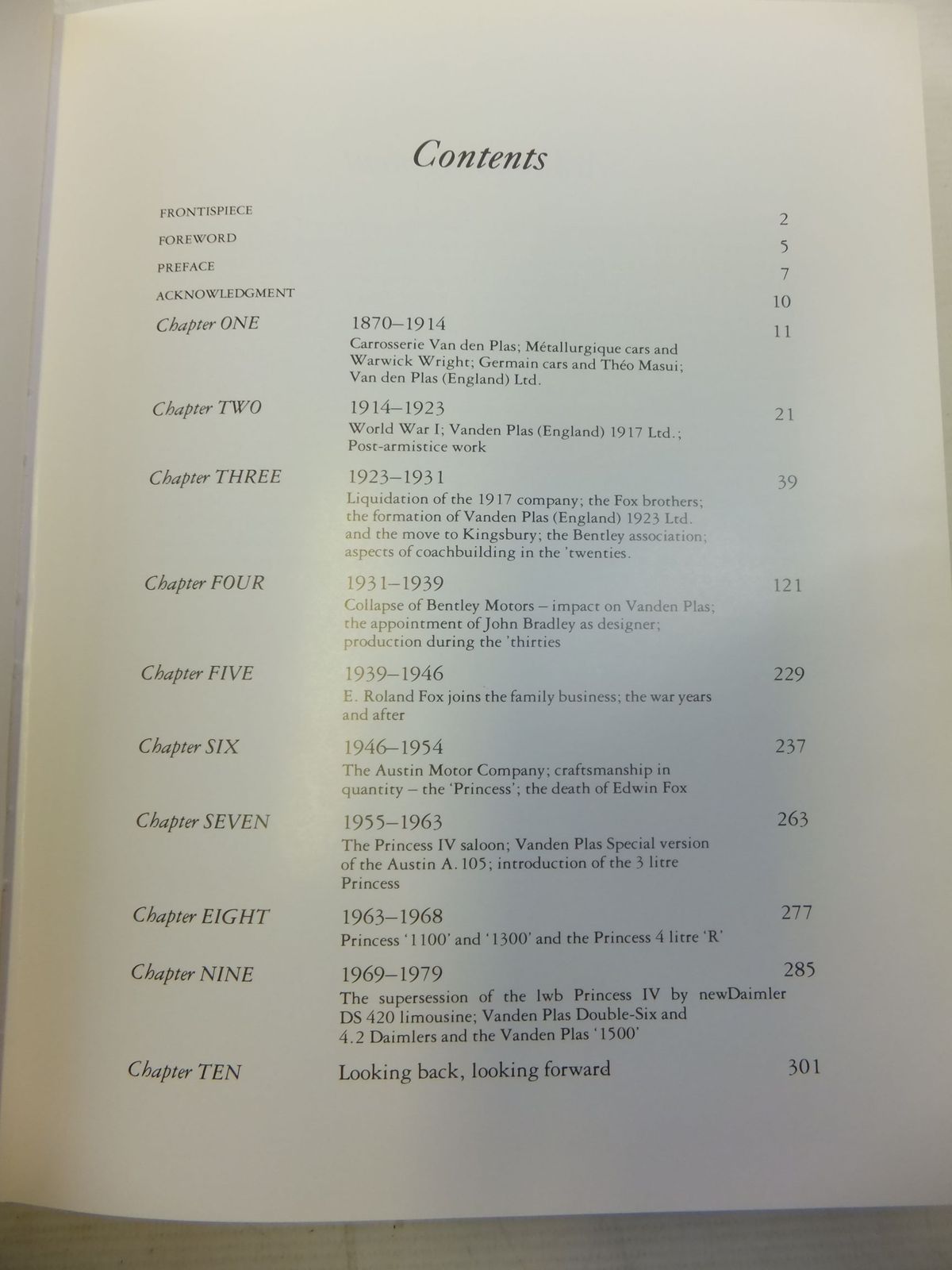Slightly better than very good condition in a slightly better than very good dustwrapper. Green leatherette binding, gilt titles. B/w photos. The name Vanden Plas must forever be linked to that of Bentley. In the vintage section it is Bentleys with standard sports bodies, with boat-tailed two-seater bodies, with flexible saloon bodies, drop-head coupes, limousines and tourers. In the 30s Vanden Plas moved on to Olvis and Lagonda, Daimler and Rolls Royce. The book also covers the more modern association with Austin.