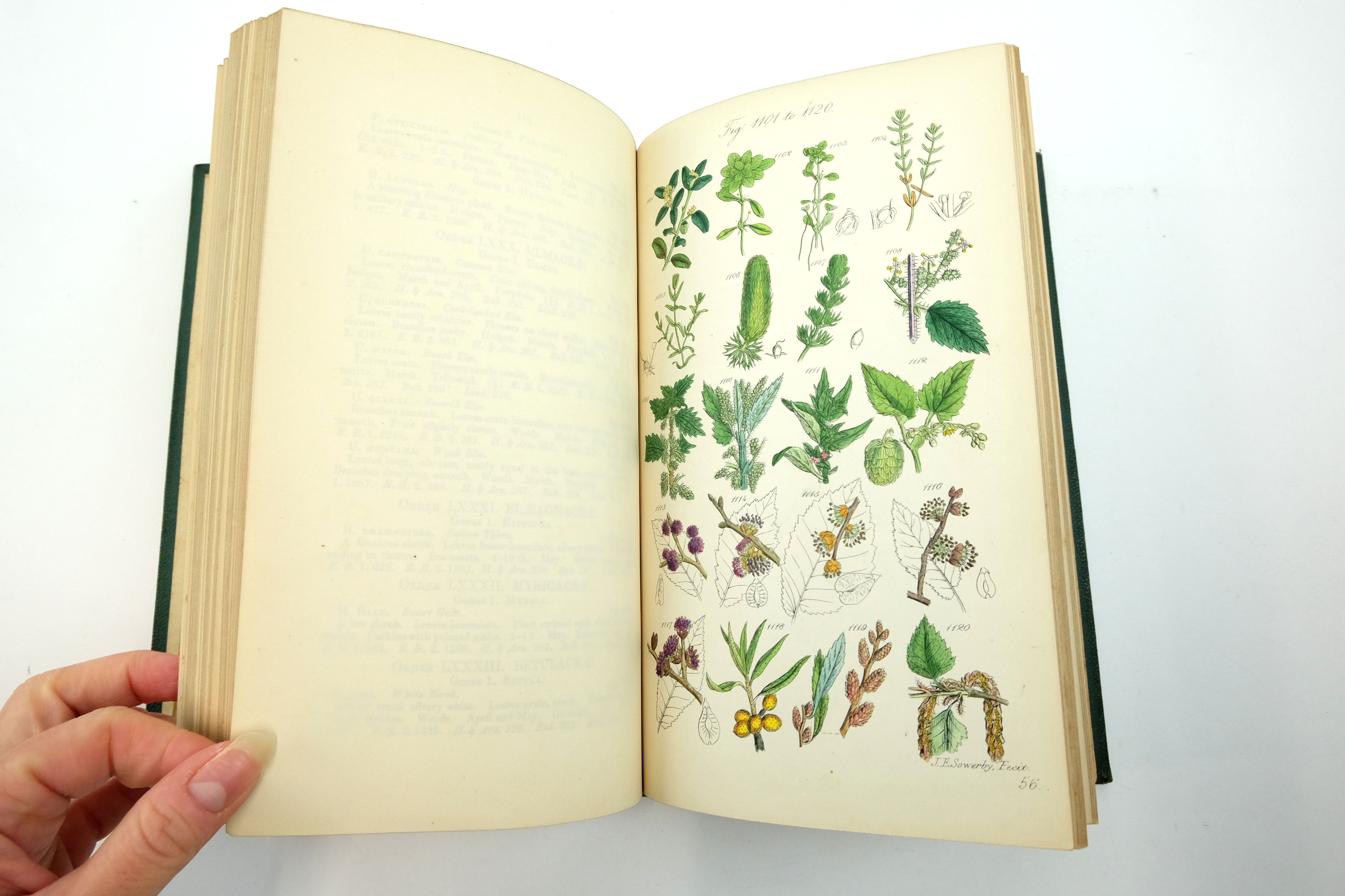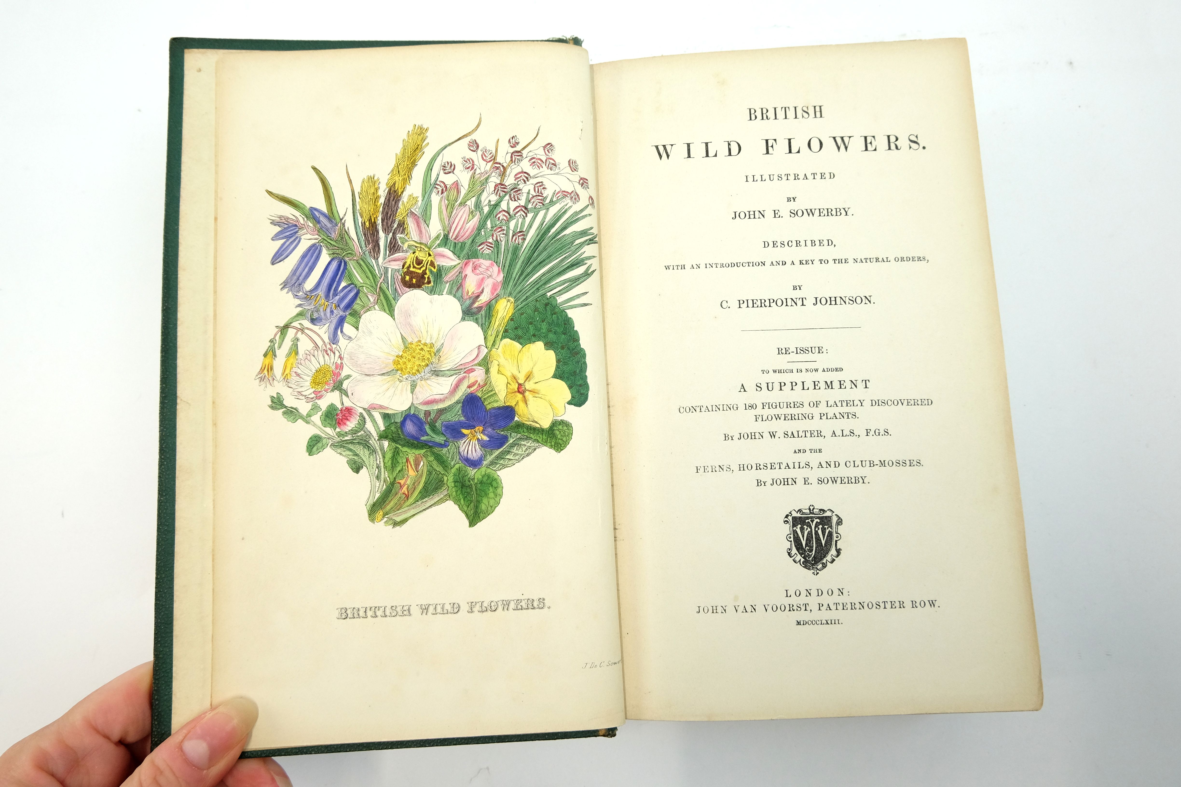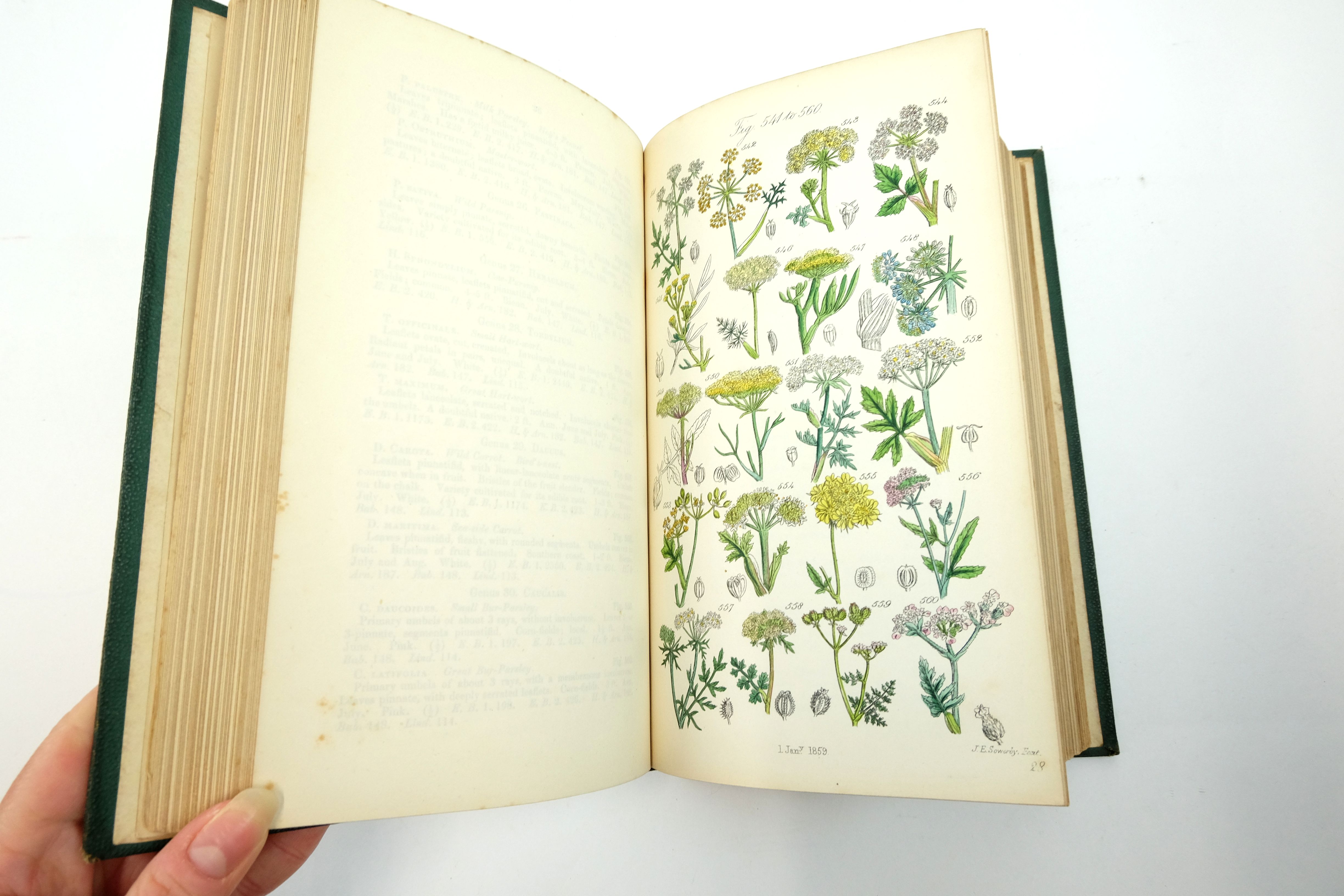 Almost very good condition. Green cloth. All edges gilt. Gilt titles. Re-issue: to which is now added a supplement containing 180 figures of lately discovered flowering plants by John W. Salter and the ferns, horsetails, and club-mosses by John Sowerby. Hand-coloured plates.