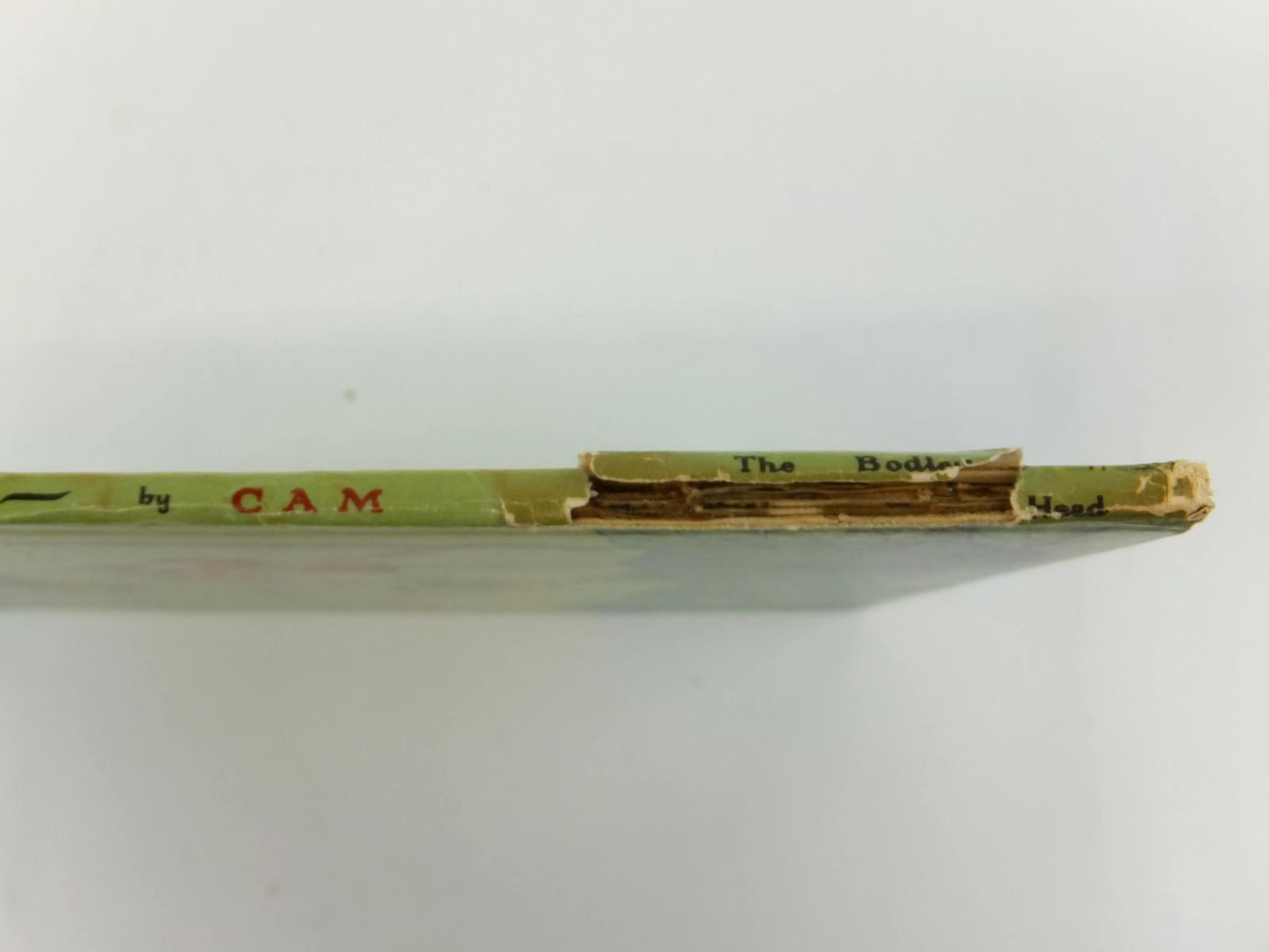 Backstrip is scuffed and split with a little loss. Pencil inscription to front endpaper. Front joint is broken. Main contents generally very good. Pictorial wrapper is in two pieces, with edge tears and chips, some loss especially to spine.