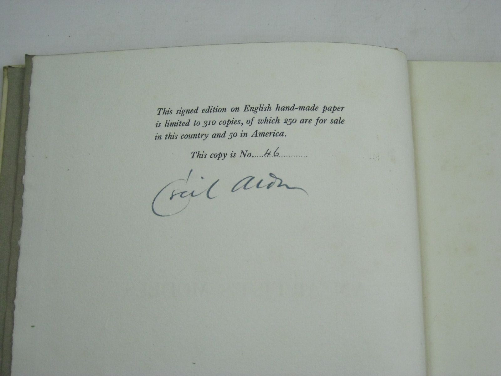 SIGNED by Aldin to limitation page. This is copy no. 46. Spine and corners bumped. Some foxing and slight grubbiness to covers. Evidence of removal of a name plate to front pastedown. Some pale foxing else contents clean.