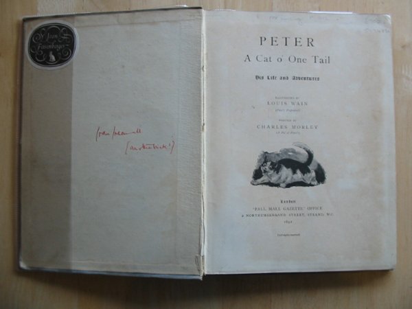 Almost very good condition. Large format. Pale blue pictorial cloth. A story based on Louis Wain's beloved cat Peter. Delightful b/w illustrations throughout, but not in Wain's usual anthropomorphic style - these are real cats! 88 pages.