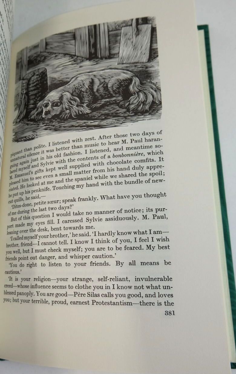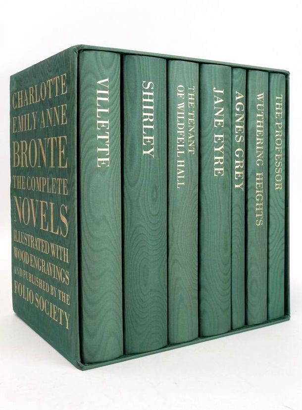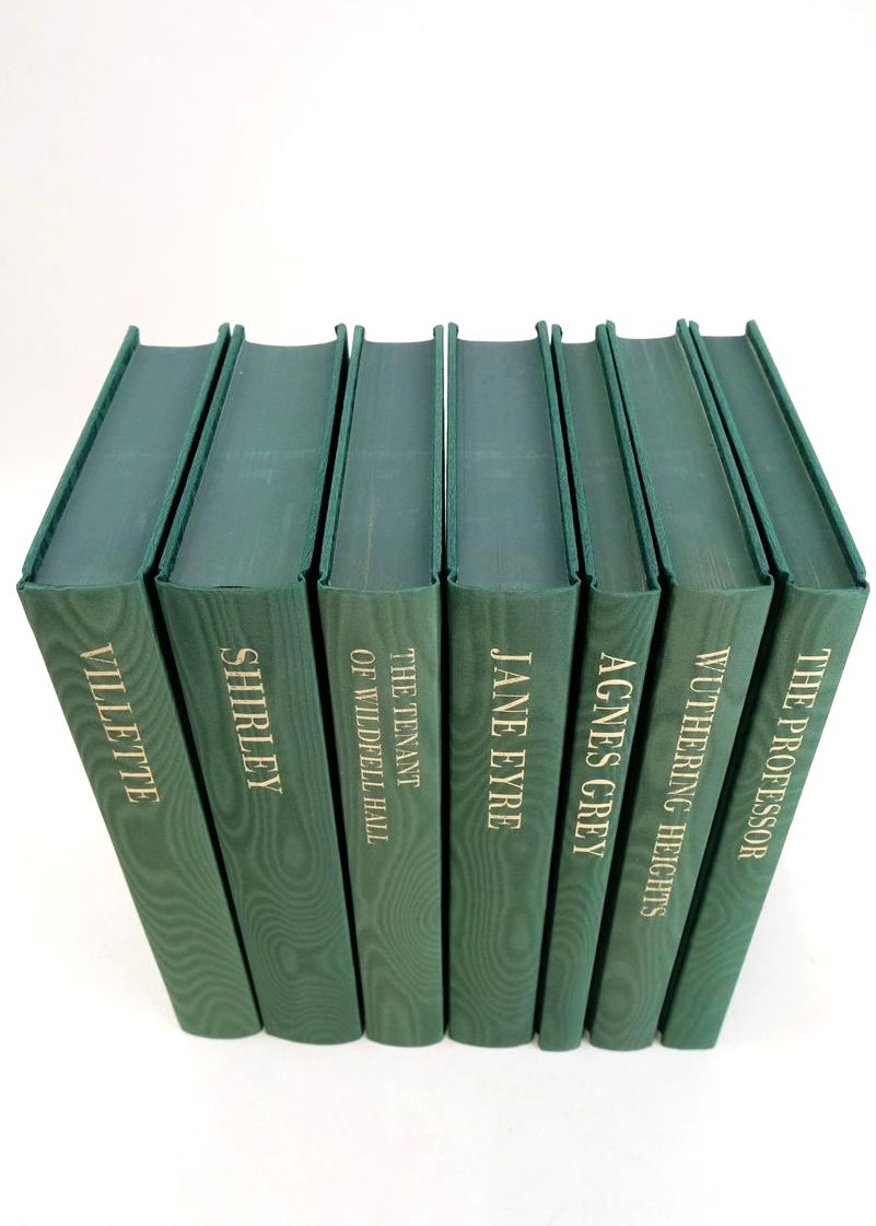 Slightly better than very good condition. Wuthering Heights; Agnes Grey; The Tenant of Wildfell Hall; Jane Eyre; Shirley; Villette; and The Professor. Seven volumes bound in full moire silk. Gilt titles. B/w wood engravings.