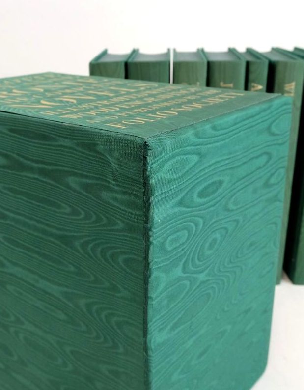 Spines slightly faded else lovely set contained in publisher's slipcase which is bumped to lower rear corner.