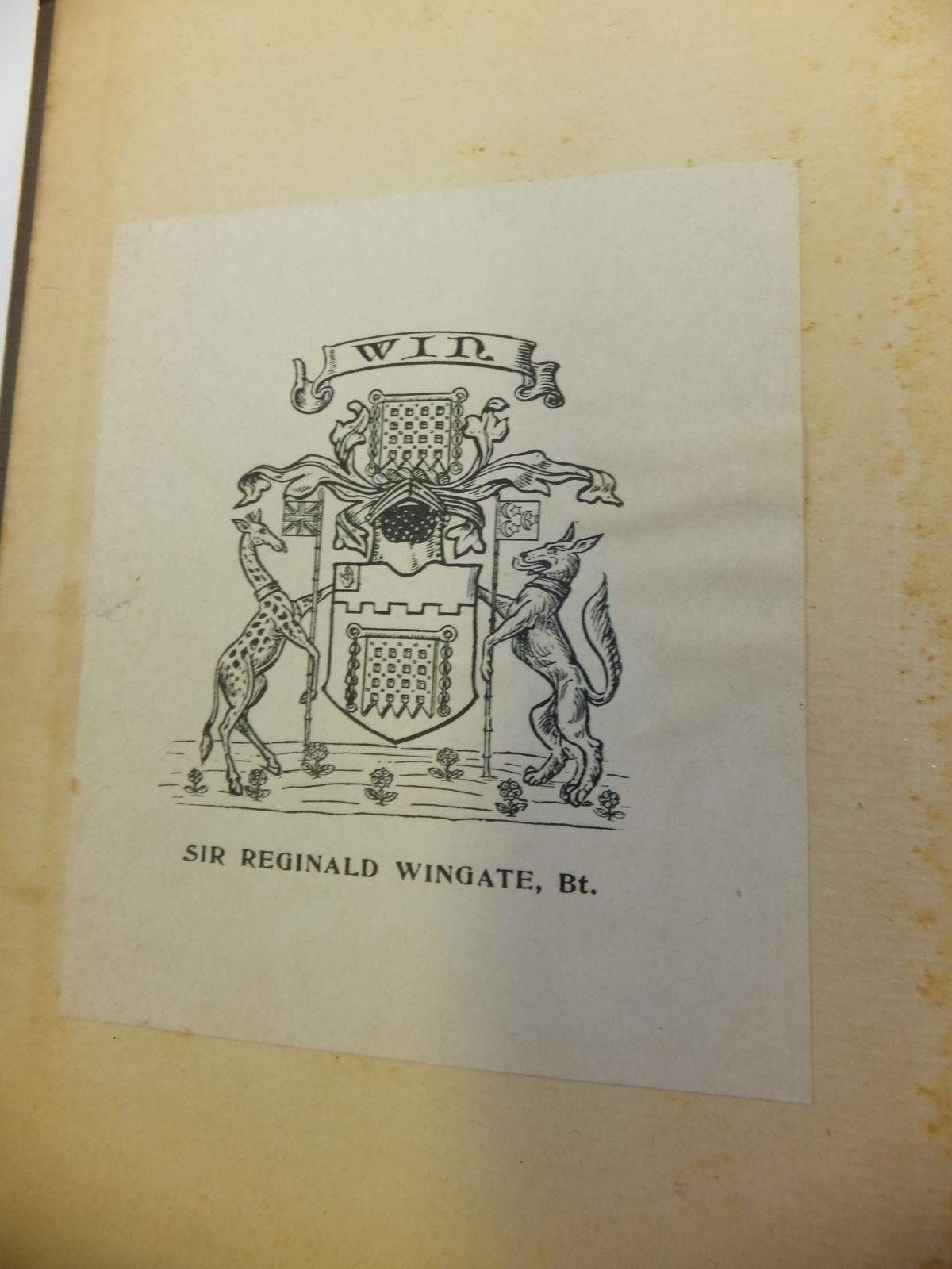Light bumping to corners and spine. A few marks to covers. Bookplate to front pastedown of Baronet Sir Reginald Wingate - founder and governor-general of Anglo-Egyptian Sudan. Inscription in ink to front endpaper 'From the Author' (no Signature). Compliments slip also clipped to front endpaper - a few rust marks from paperclip. A little foxing and page browning.