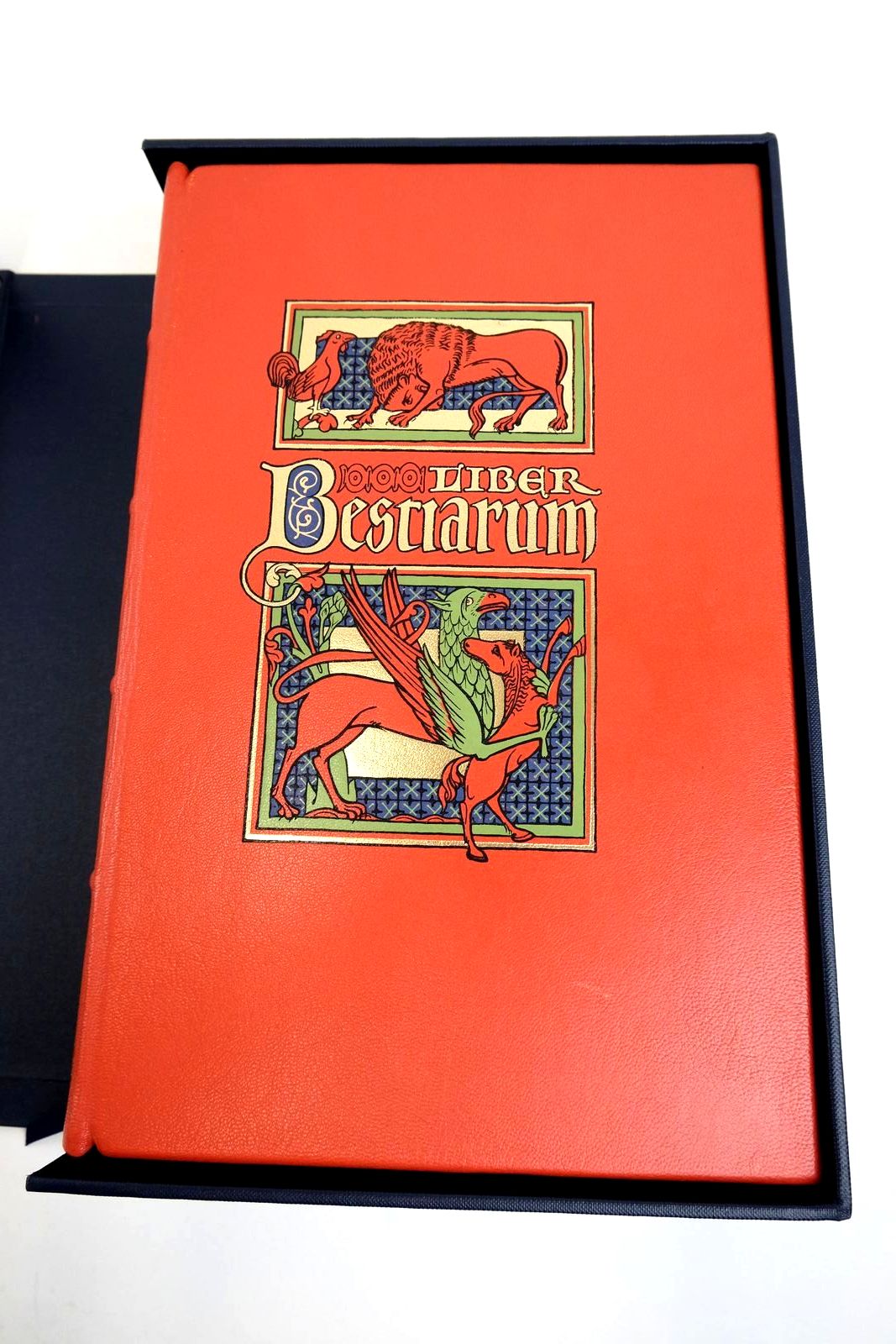 Facsimile volume is a tiny bit rubbed at front edge of spine and has a tiny scratch mark to front cover. Blue solander slipcase is bumped at corners with a couple of tiny dents at edges.