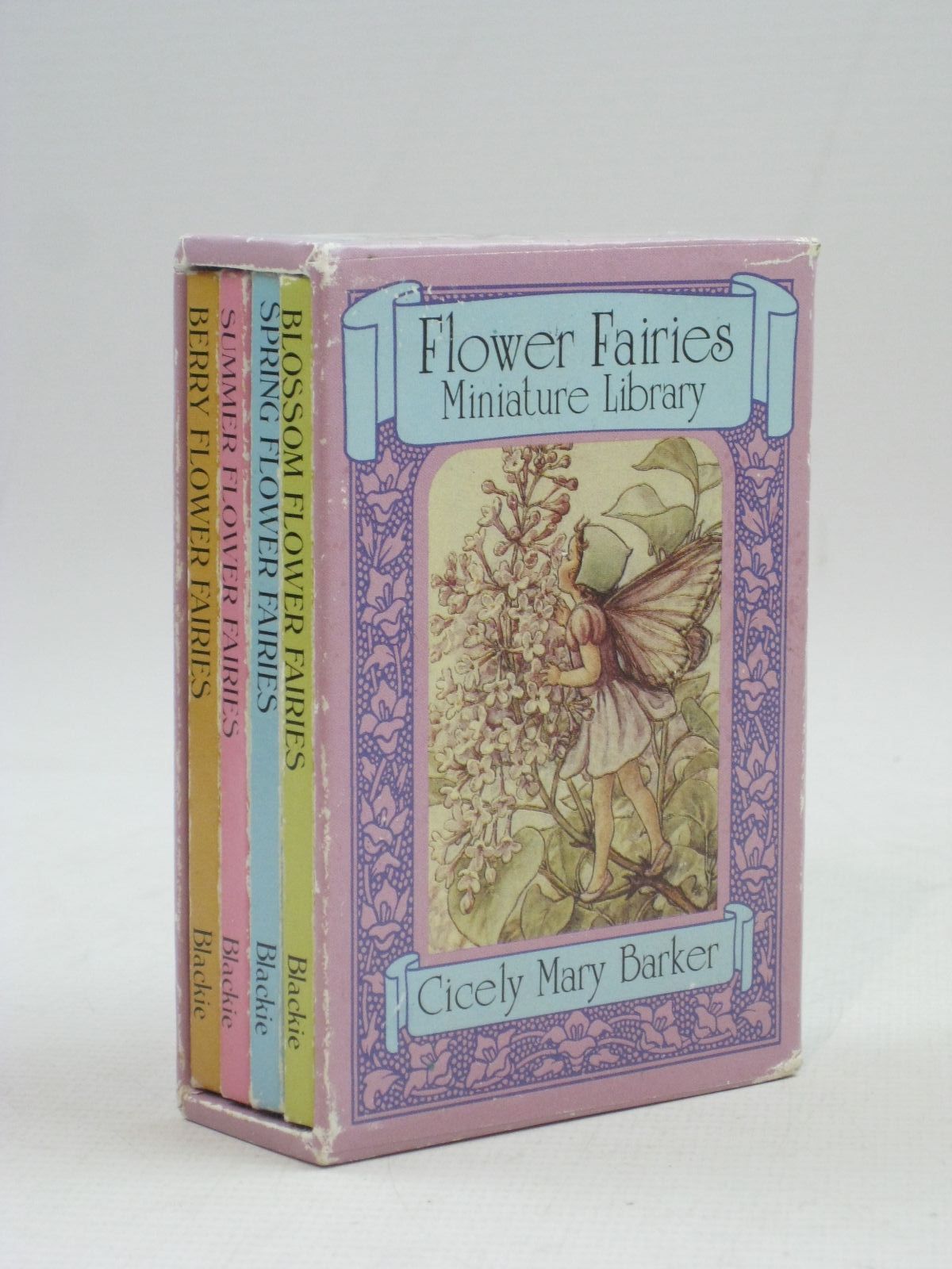 Very good condition. Four small books of Spring, Blossom, Summer and Berry flower fairies. Each has 7 colour pictures of fairies with accompanying verse. Contained in lilac slipcase.