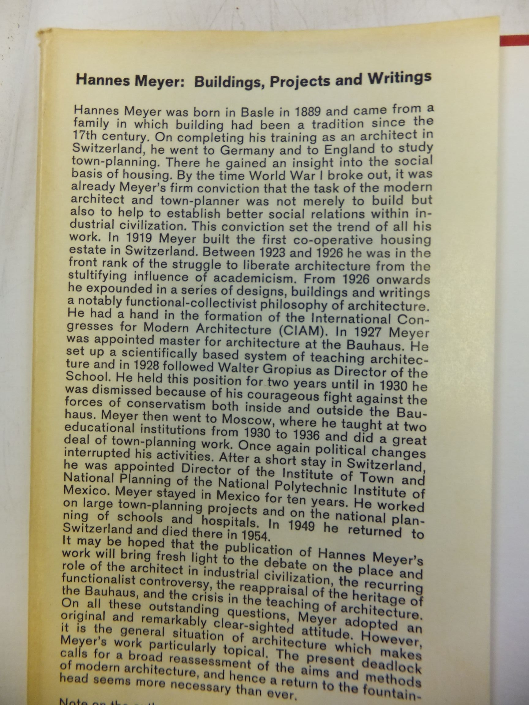 HANNES MEYER BUILDINGS, PROJECTS AND WRITINGS