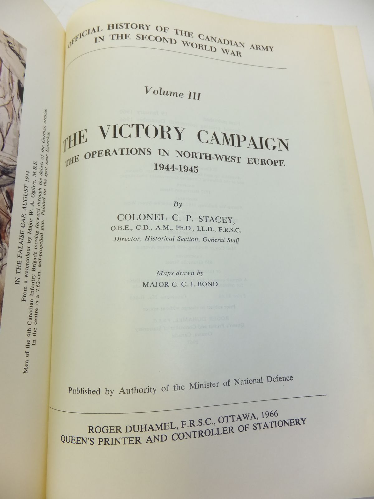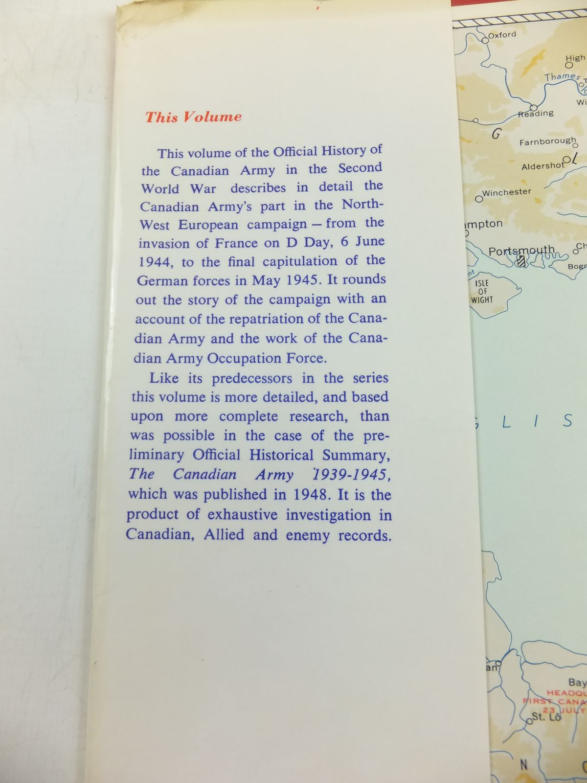 Nearly fine condition in a very good dustwrapper. The Official History of the Canadian army in the Second World War Volume III. The operations in north-west Europe 1944-1945. xiii + 770 pages. Large folding colour maps. B/w sketch maps and photos.