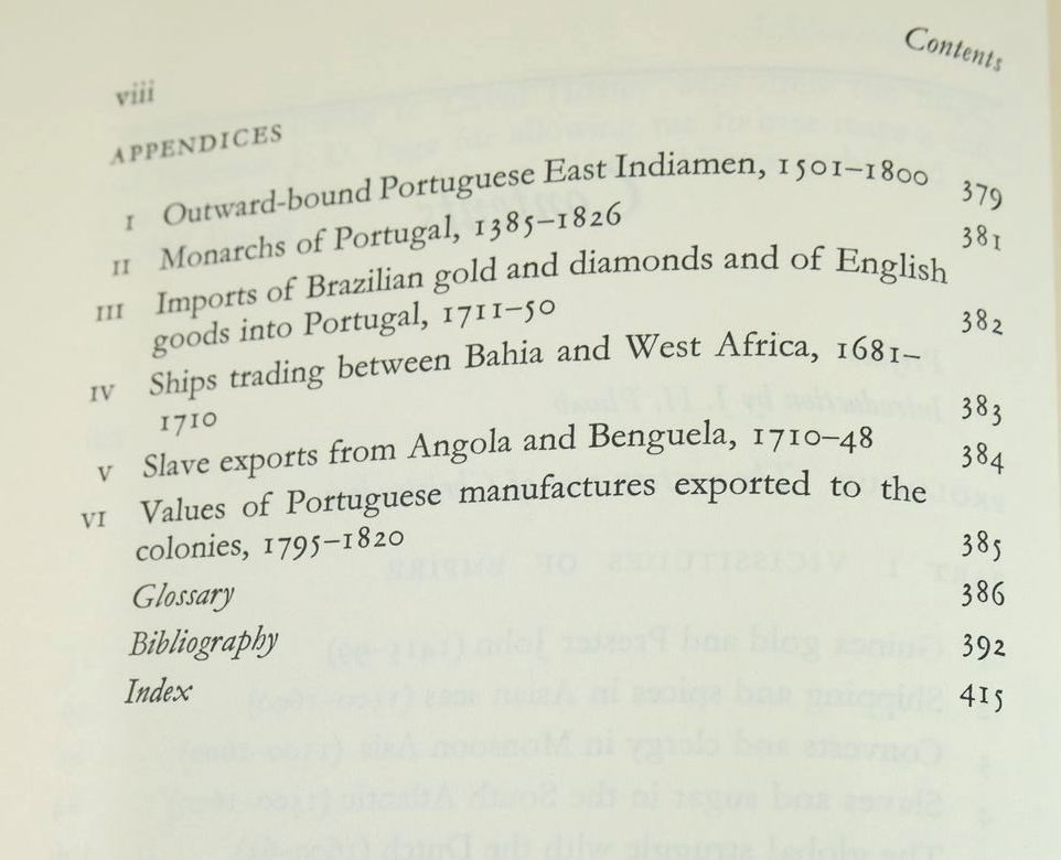 Very good condition in a almost very good dustwrapper. A comprehensive record of nearly four centuries of exploitation and bureaucracy in India, the Orient, Africa and Brazil, and a detailed study of the fleets, the men, the missions and racialism involved in this extraordinary maritime achievement. Blue cloth with green title labels to spine (and gilt titles). B/w photos & maps. 426 pages including index.