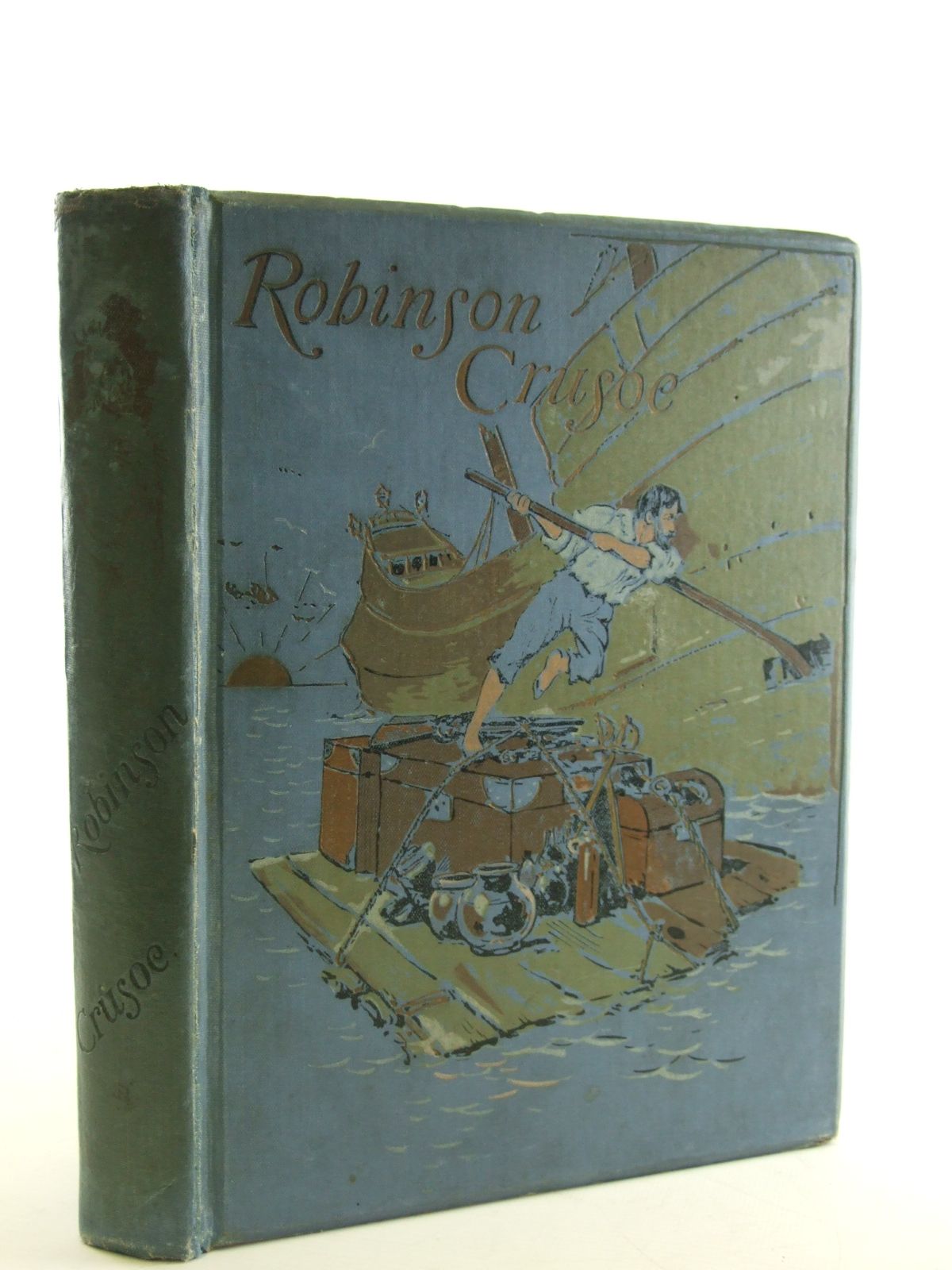 Very good condition. The life and strange surprising adventures of Robinson Crusoe of York Mariner as related by himself. Blue pictorial cloth covers. Six stunning chromo plates including frontispiece, plus upward of eighty b/w drawings. 328 pages. 9 x 7".
