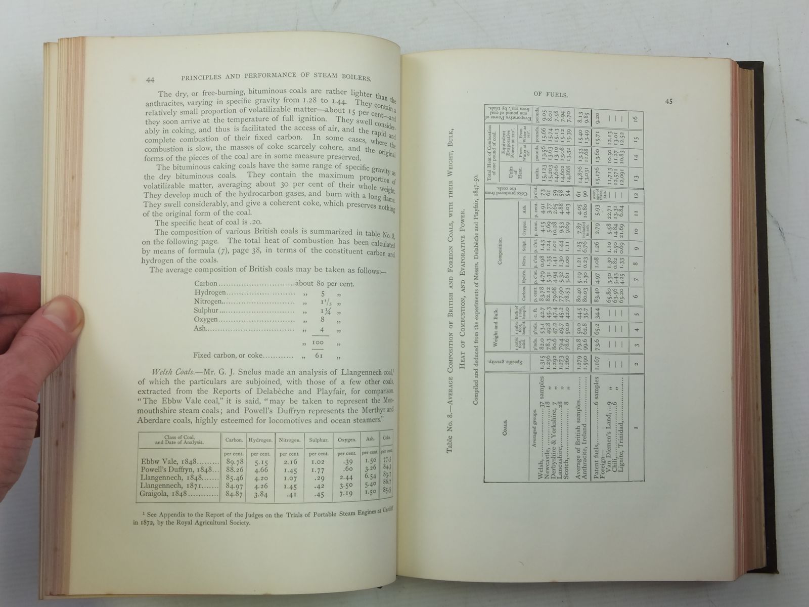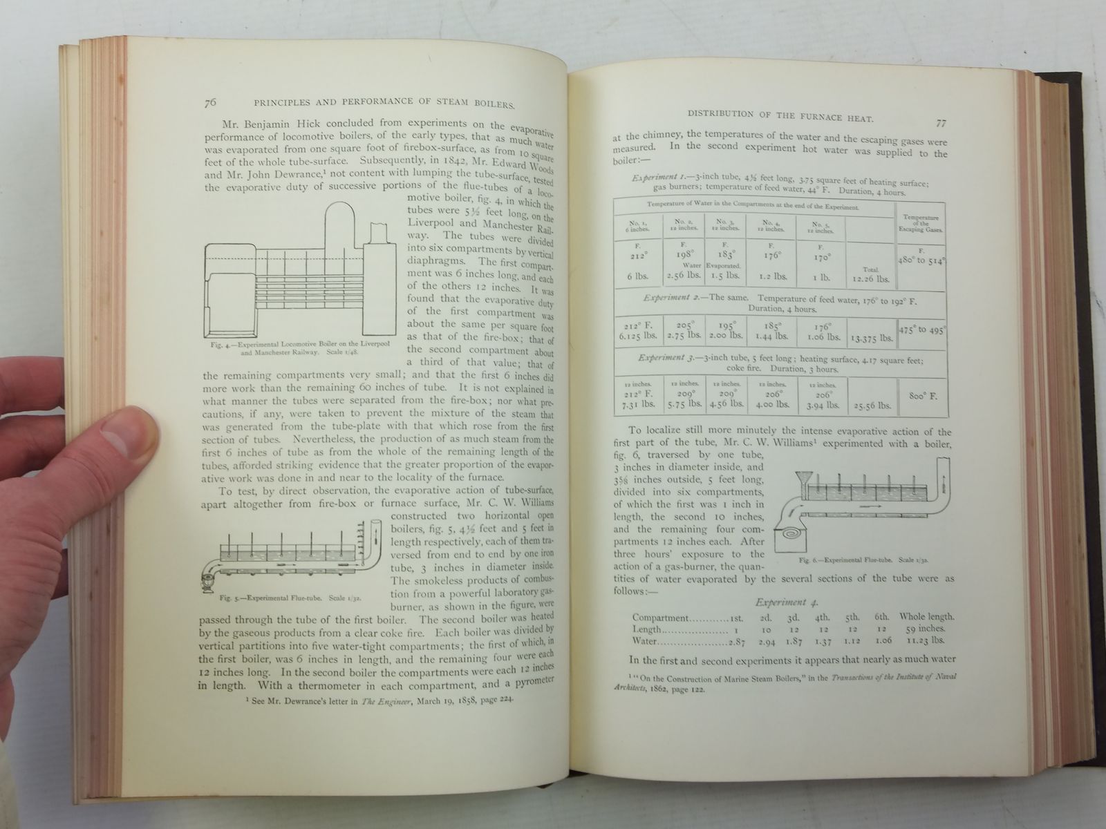 Very good condition. 4 Volumes. A treatise on Steam Engines and Boilers. Comprising the principles and practice of the combustion of fuel, the economical generation of steam, the construction of steam boilers; and the principles, construction, and performance of steam engines - stationary, portable, locomotive, and marine, exemplified in engines and boilers of recent date. B/w illustrations, tables and folding diagrams.